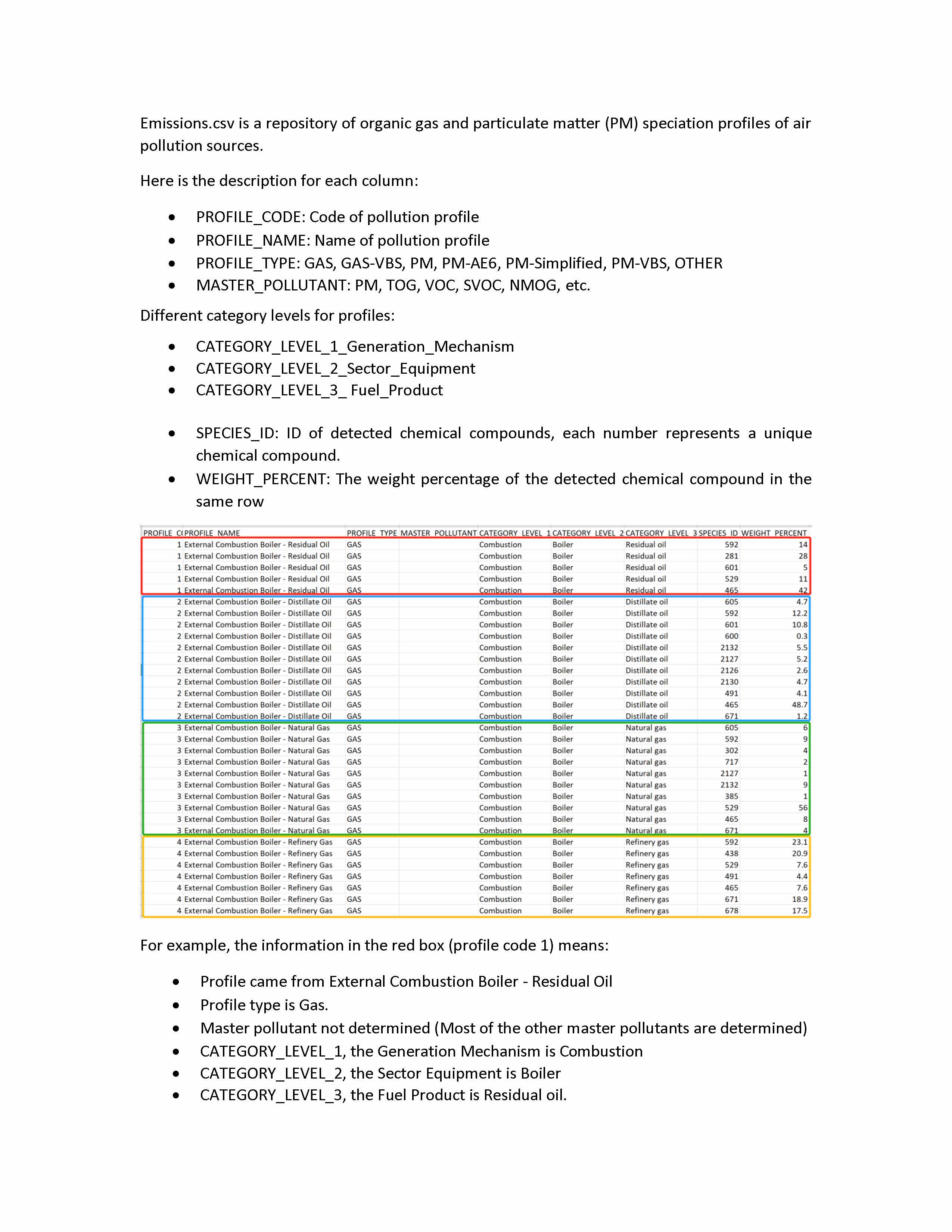 Emissions.csv is a repository of organic gas and particulate matter...