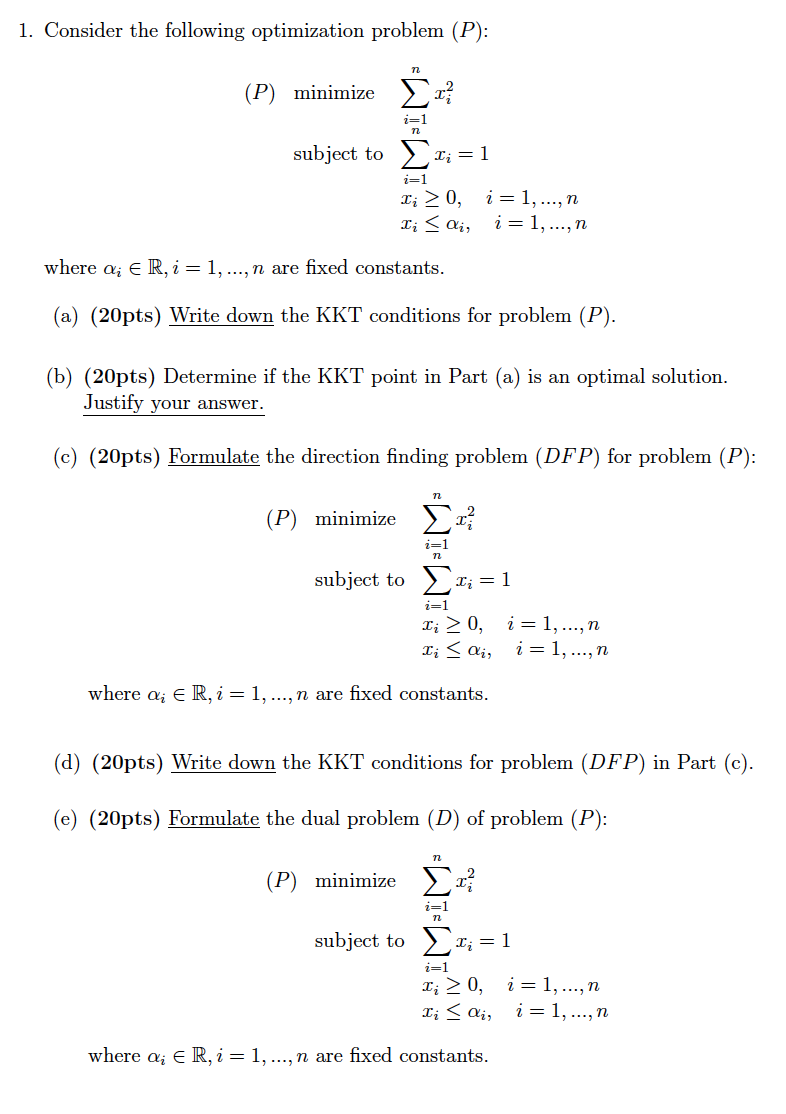 1. Consider the following optimization problem (P): (P) minimize ...