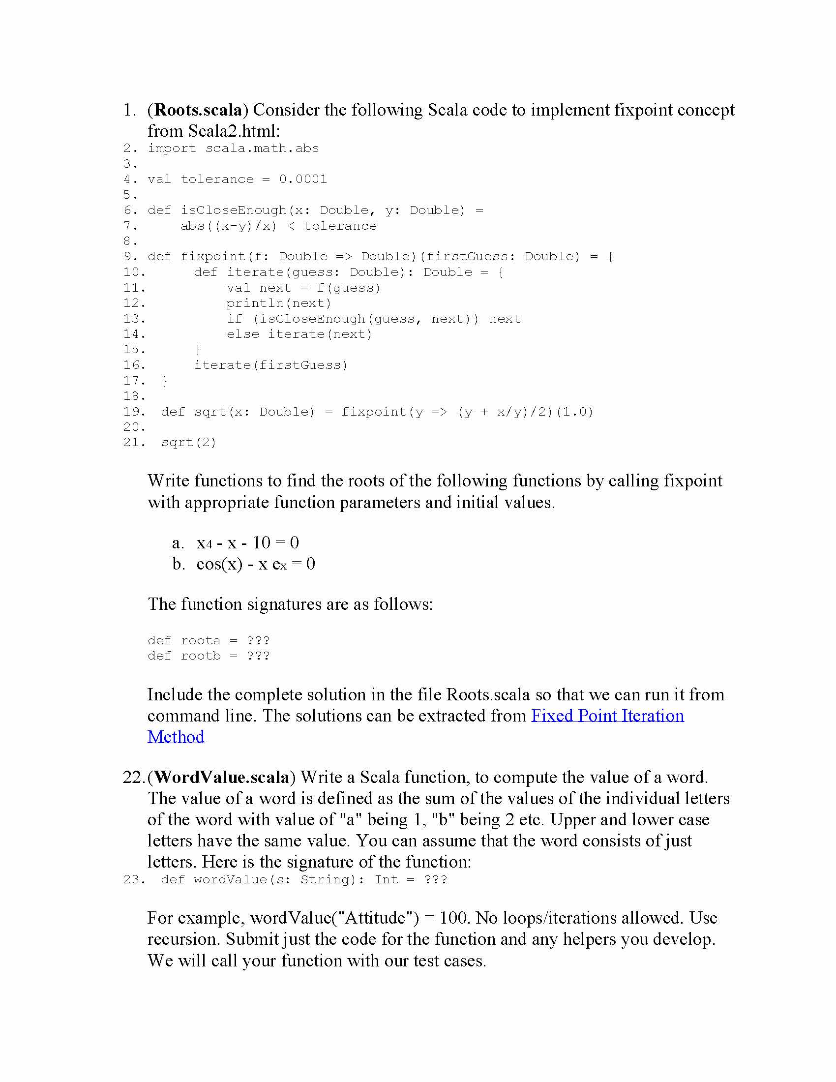 1. (Roots.scala) Consider the following Scala code to implement fix...