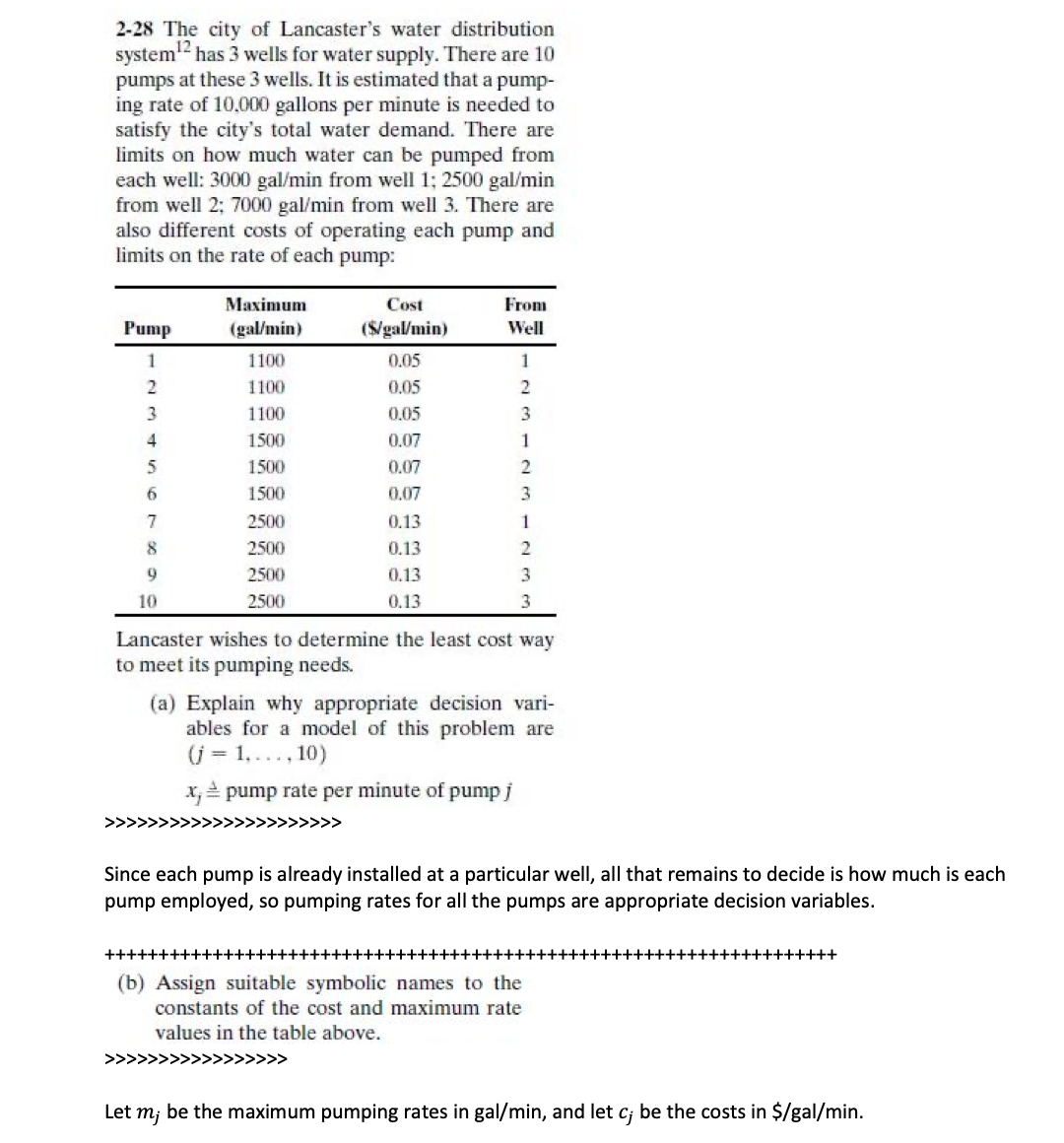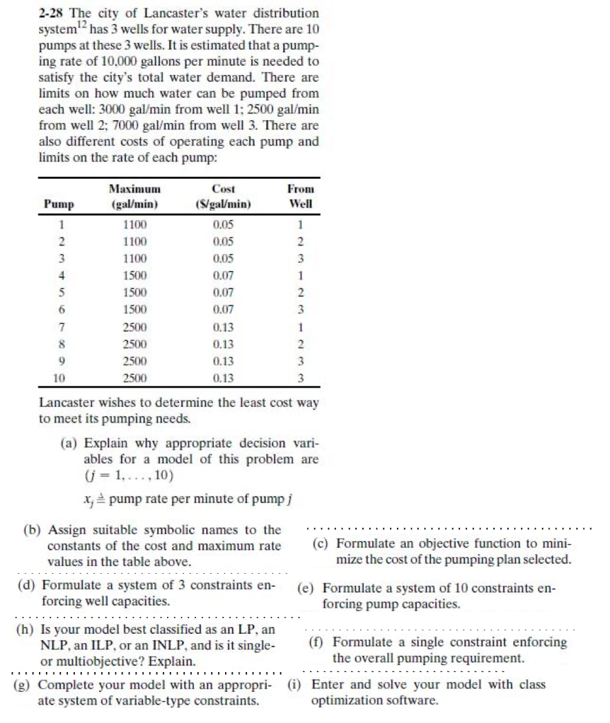 2-28 The city of Lancaster's water distribution system has 3 wells...