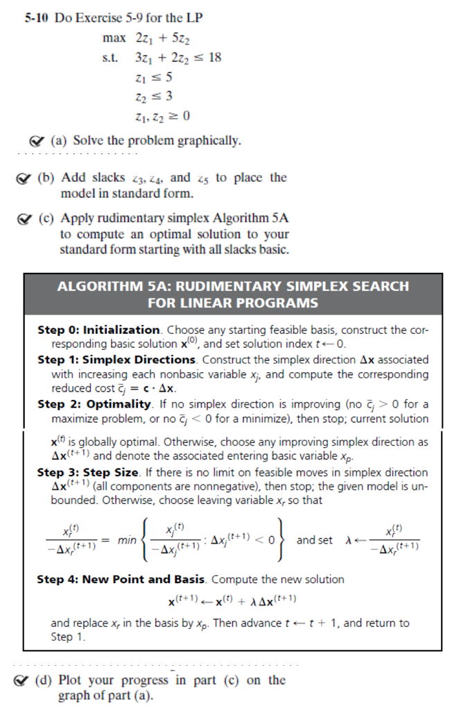 5-10 Do Exercise 5-9 for the LP max 2z1 + 5z2 s.t. 3z1 + 2z2 s 1...