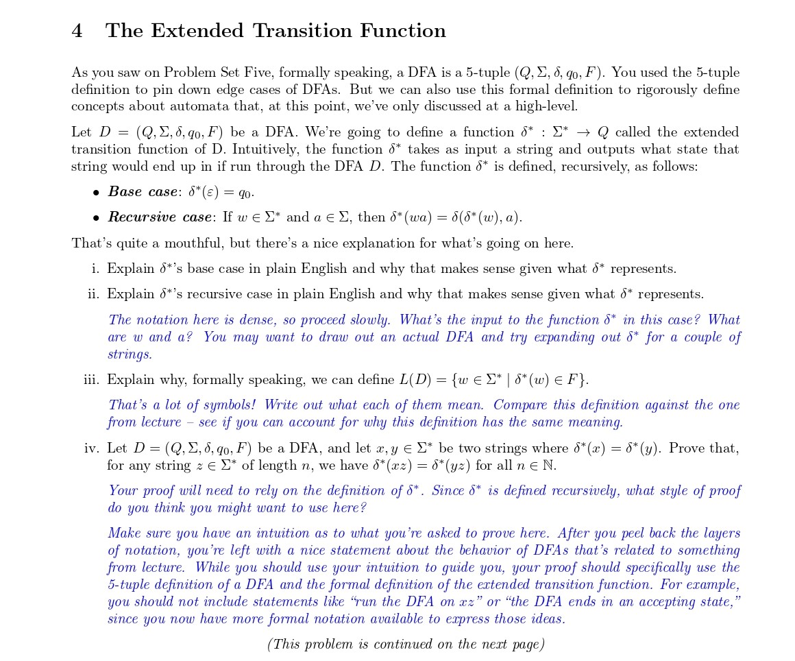 4 The Extended Transition Function As you saw on Problem Set Five...
