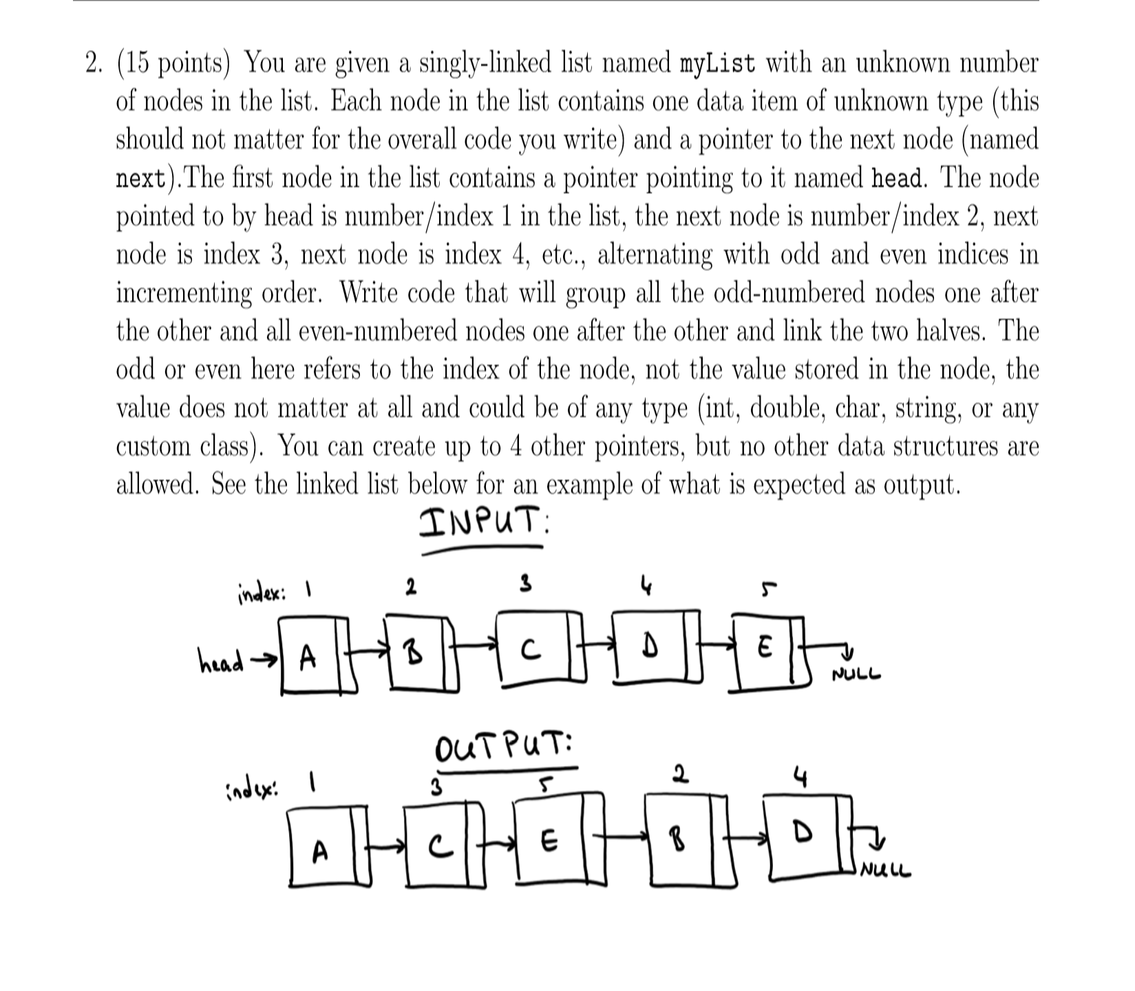 2. (15 points) You are given a singly-linked list named myList wit...