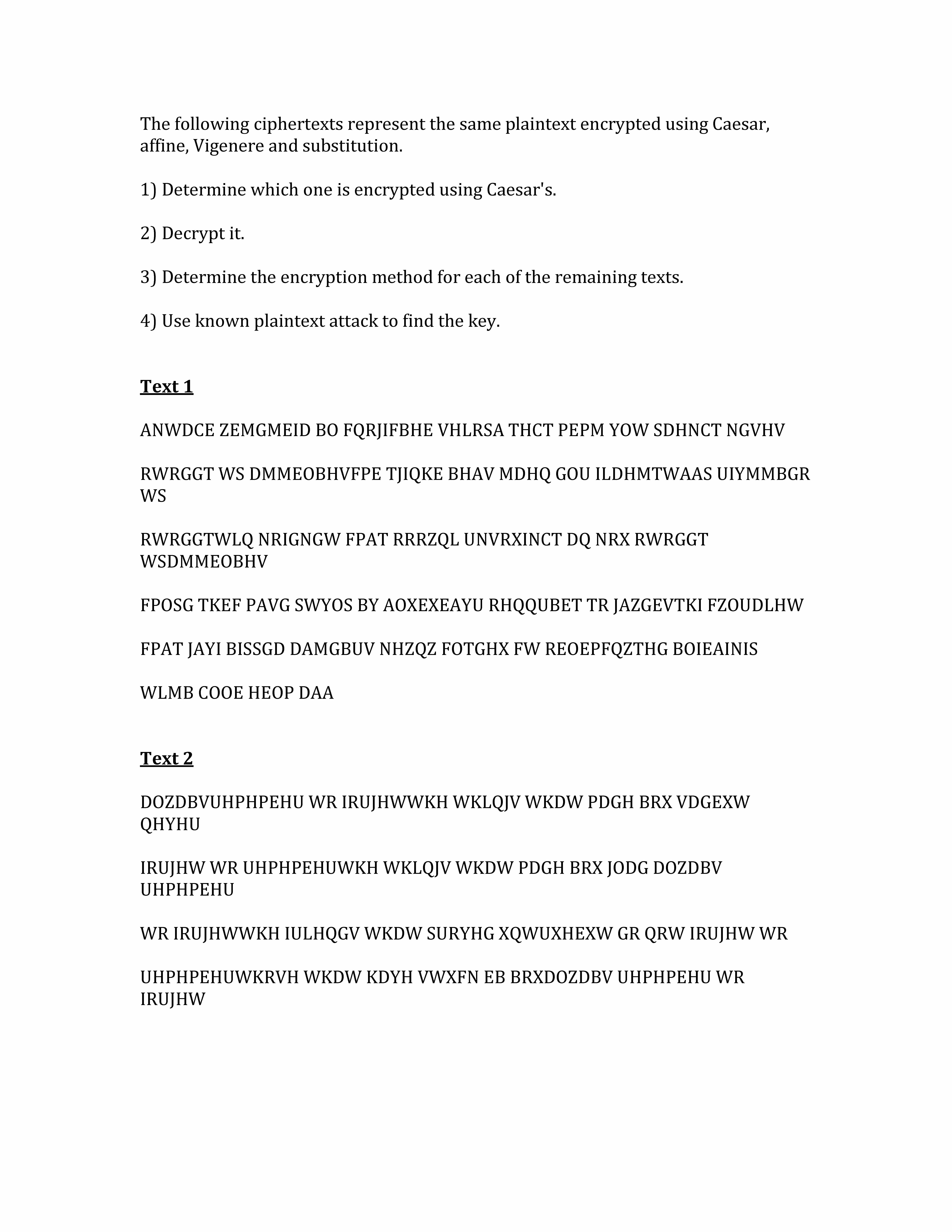 The following ciphertexts represent the same plaintext encrypted us...