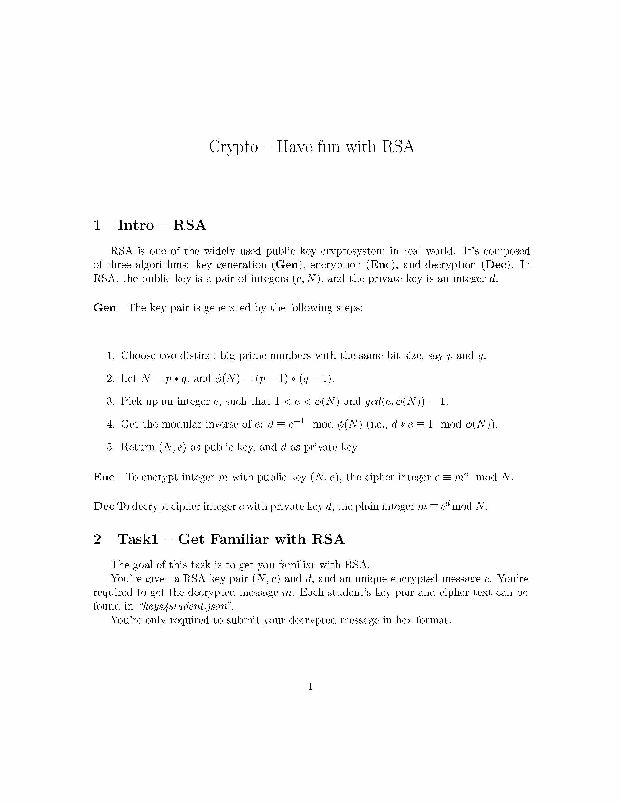 Crypto Have fun with RSA 1 Intro RSA RSA s one the widely used p...