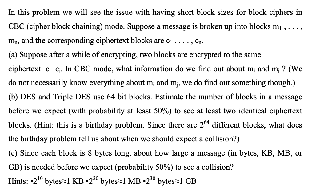 In this problem we will see the issue with having short block sizes...