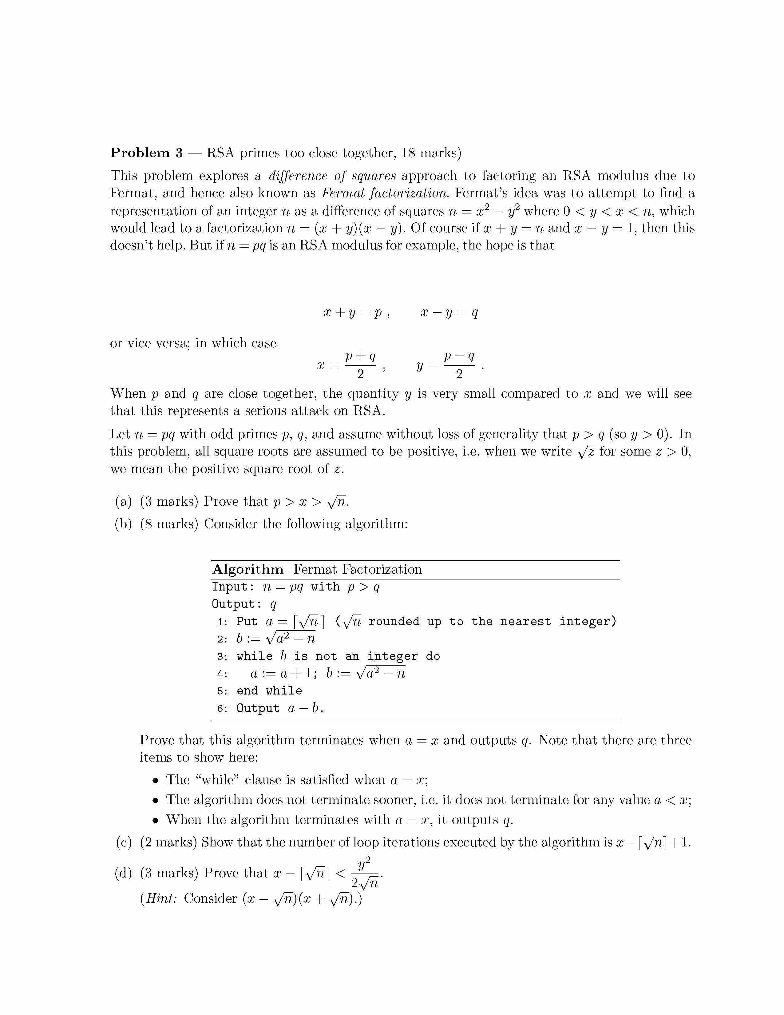 Problem 3 — RSA primes too close together, 18 marks) This proble...