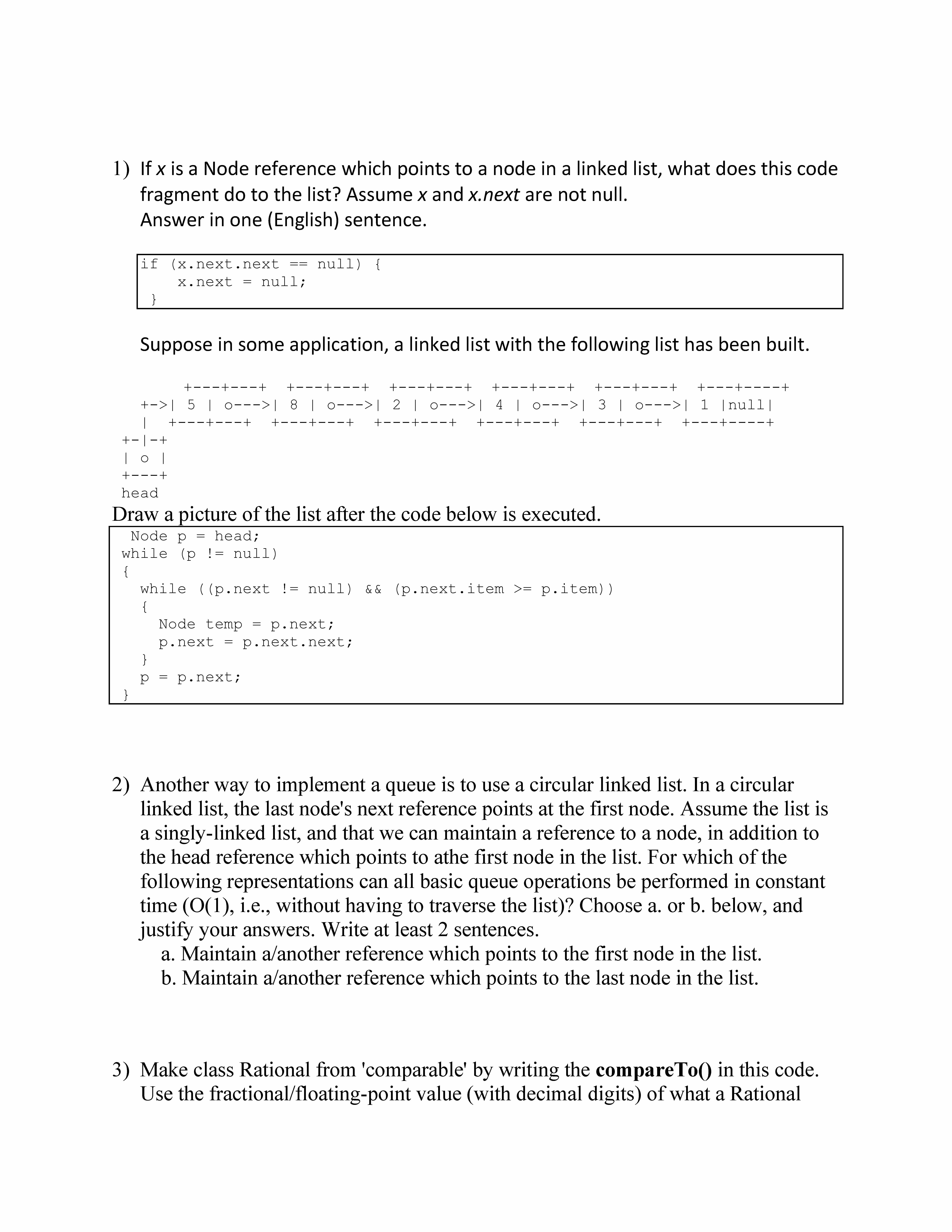 1) If x is a Node reference which points to a node in a linked list...