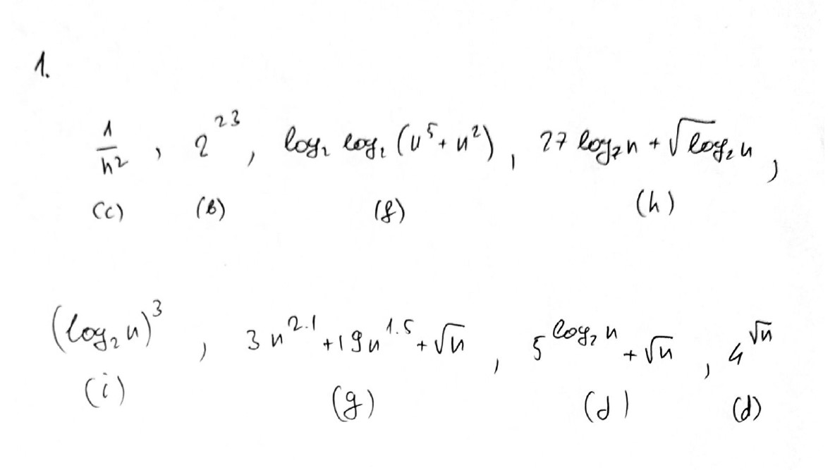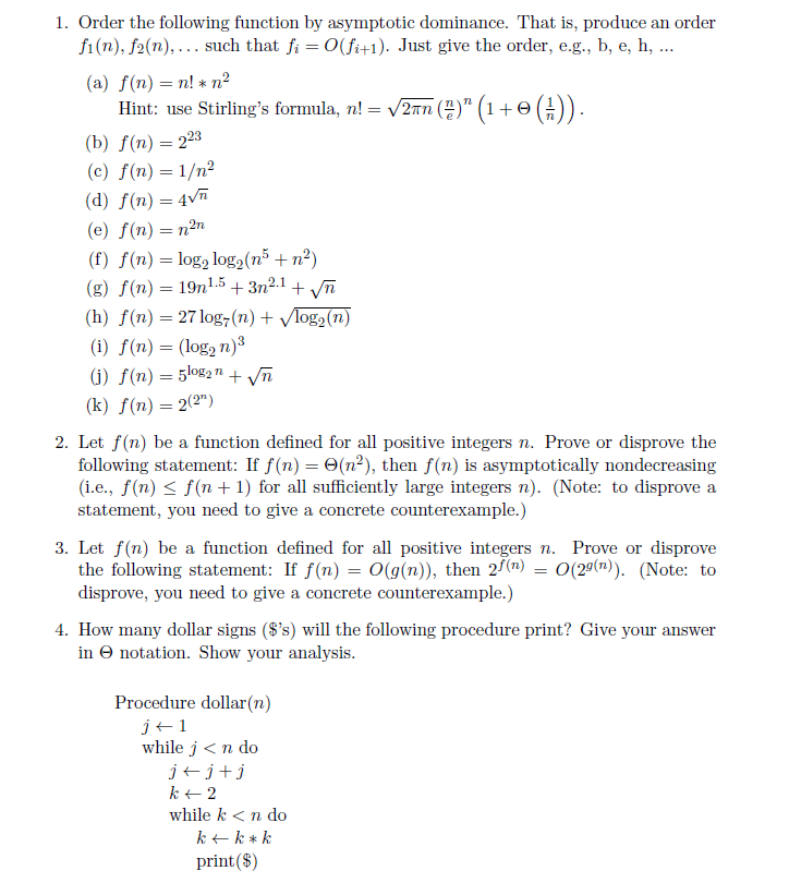 1. Order the following function by asymptotic dominance. That is, p...