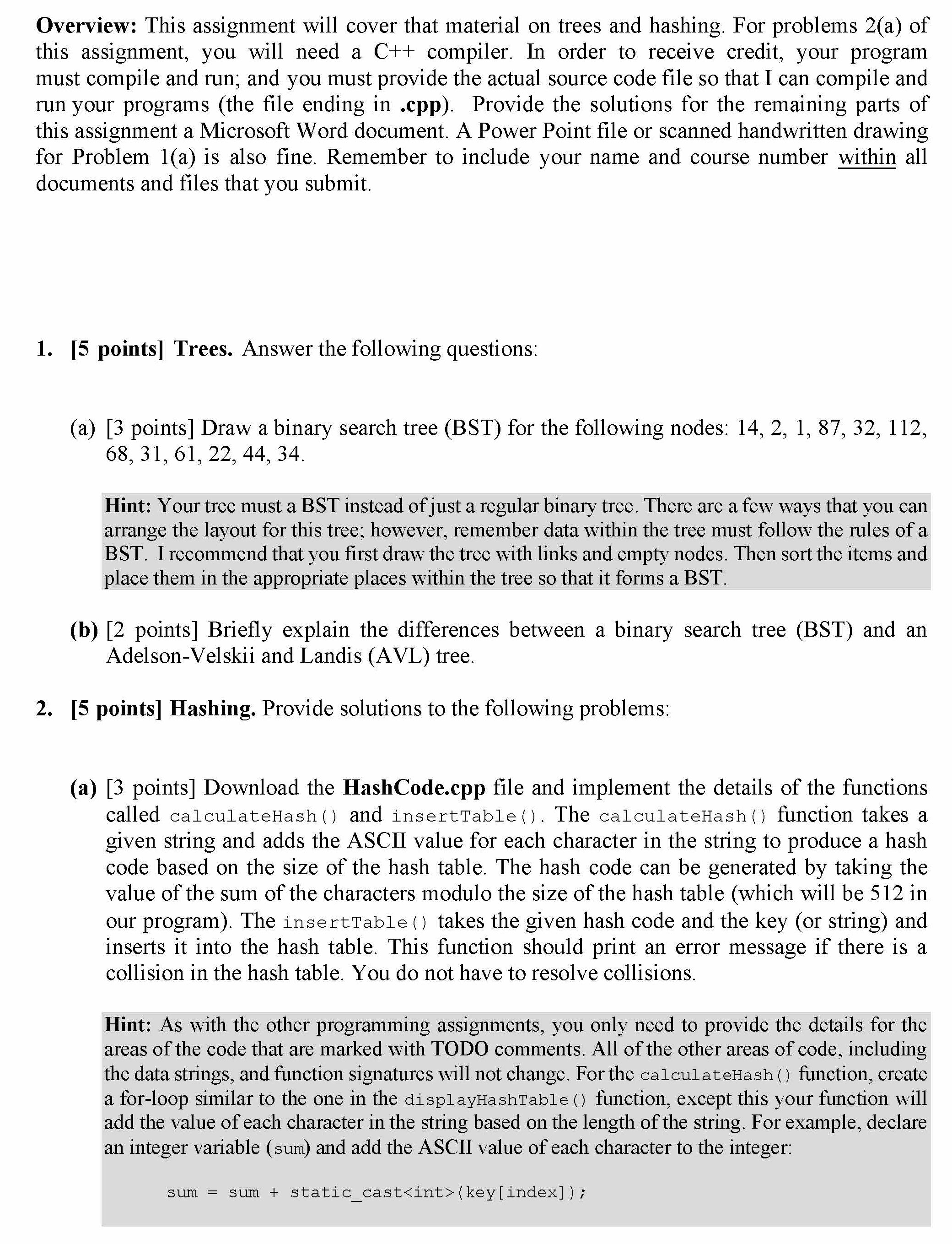 Overview: This assignment will cover that material on trees and has...