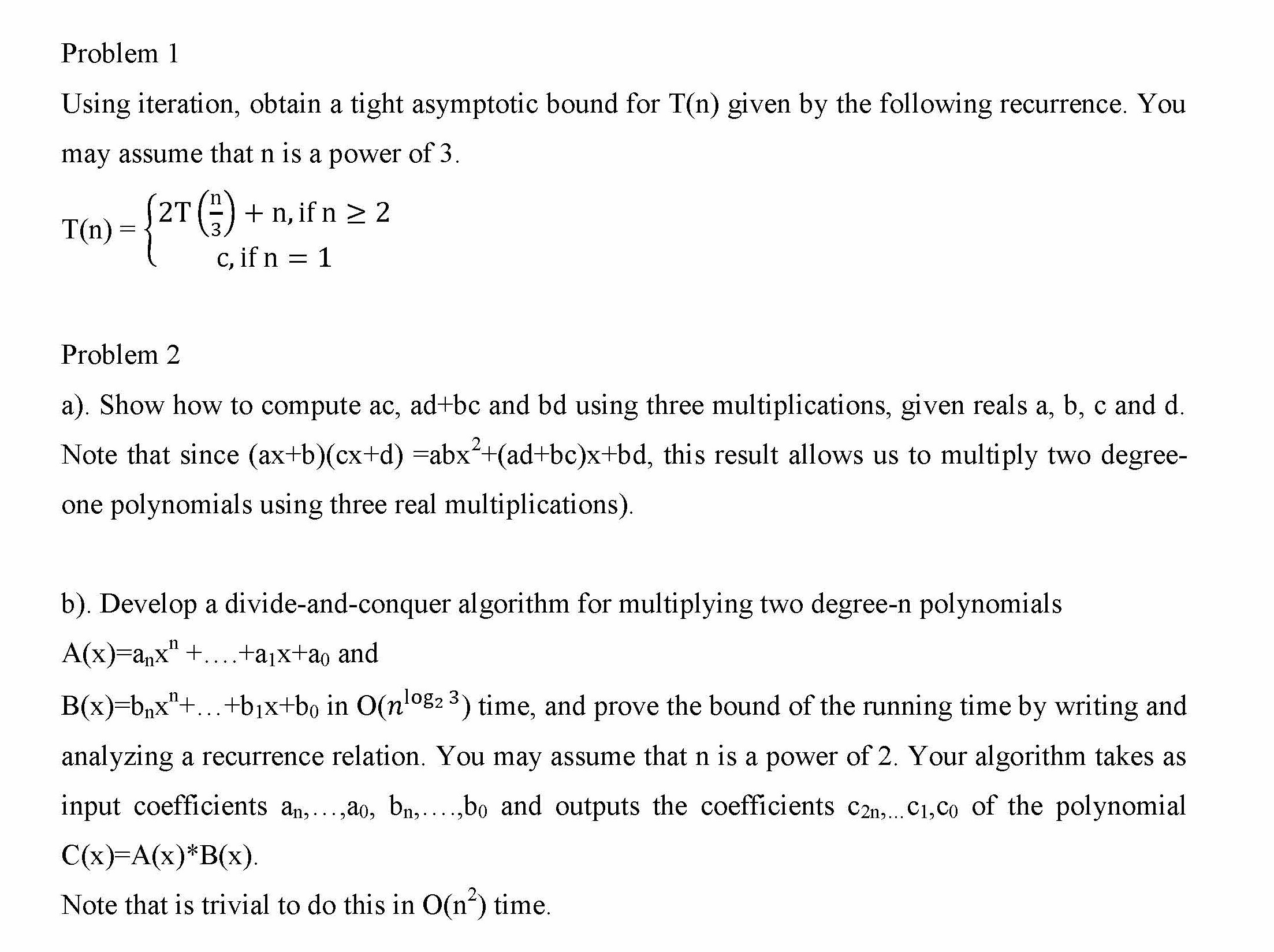 Problem 1 Using iteration, obtain a tight asymptotic bound for T(n...