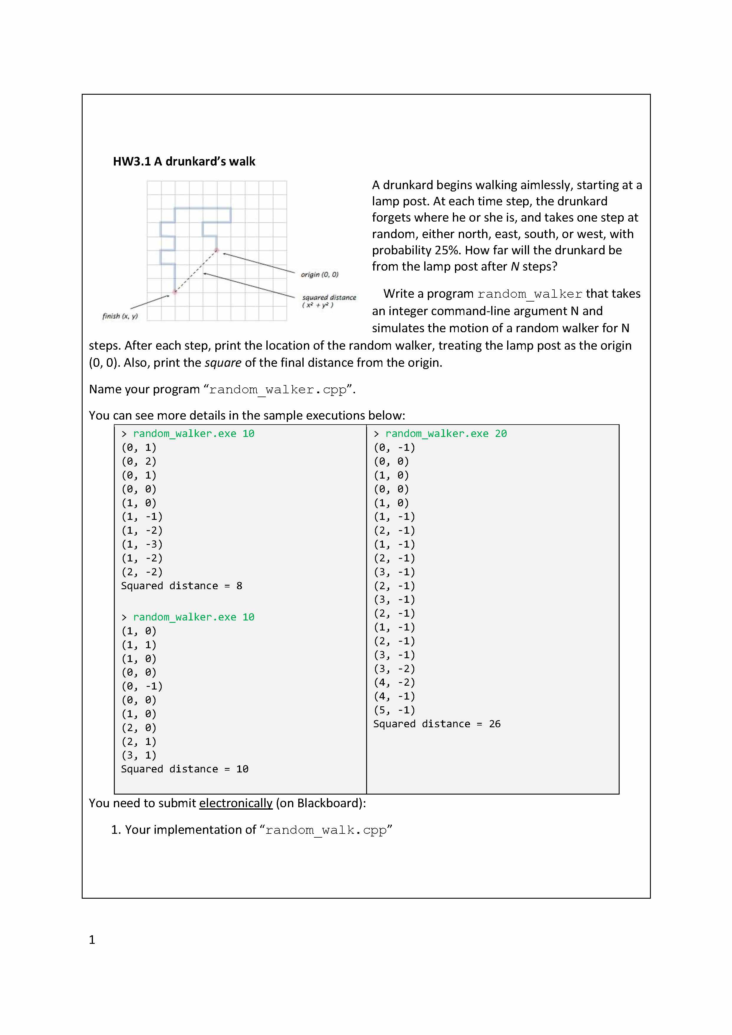 HW3.1 A drunkard’s walk A drunkard begins walking aimlessly, sta...