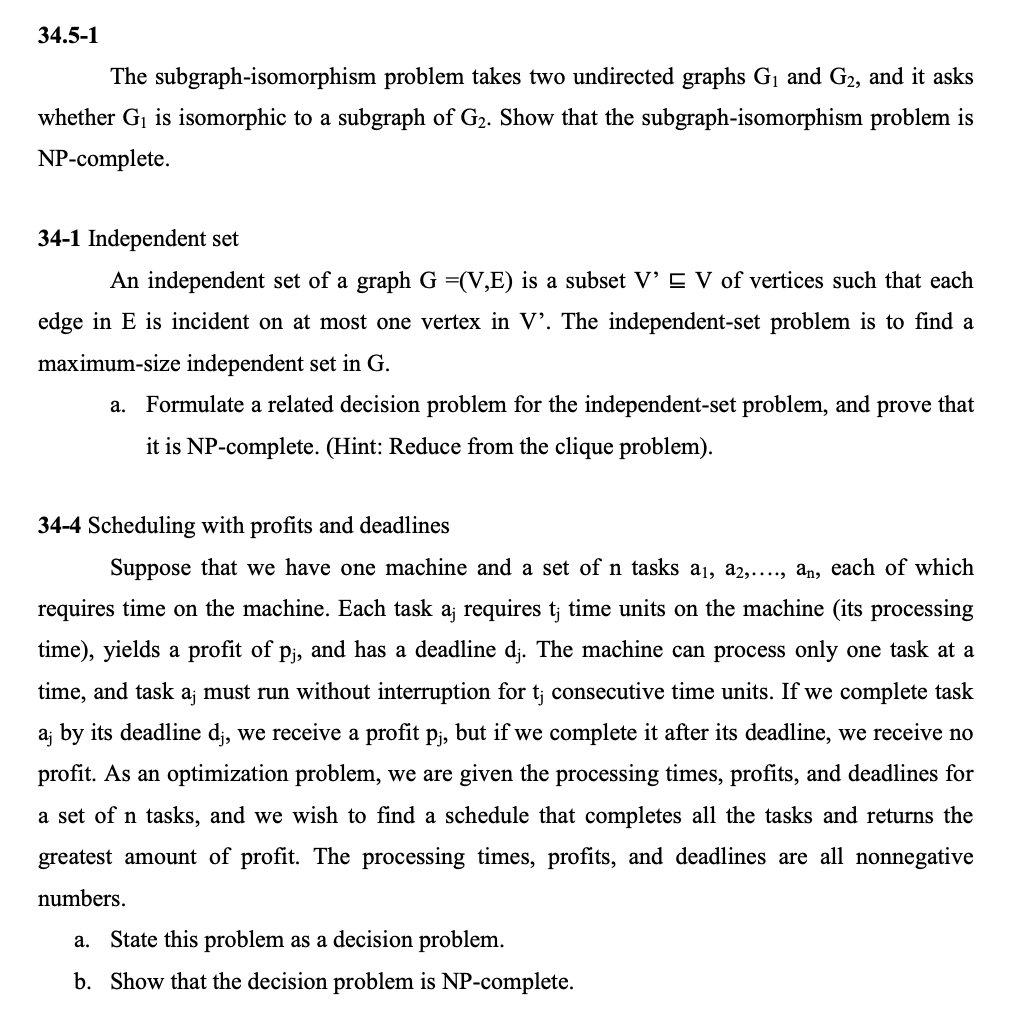 34.5-1 The subgraph-isomorphism problem takes two undirected graph...