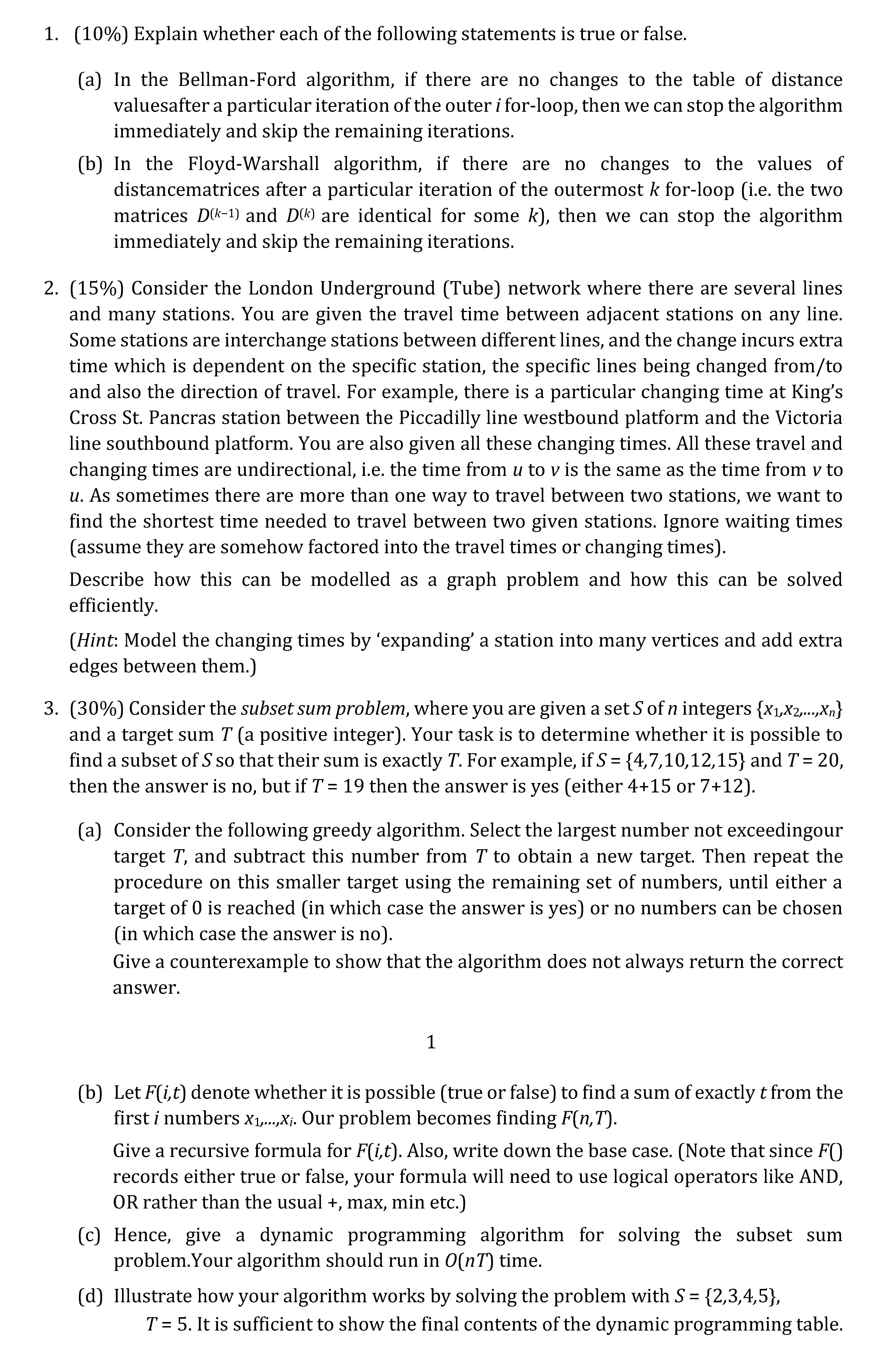 1. (10%) Explain whether each of the following statements is true o...