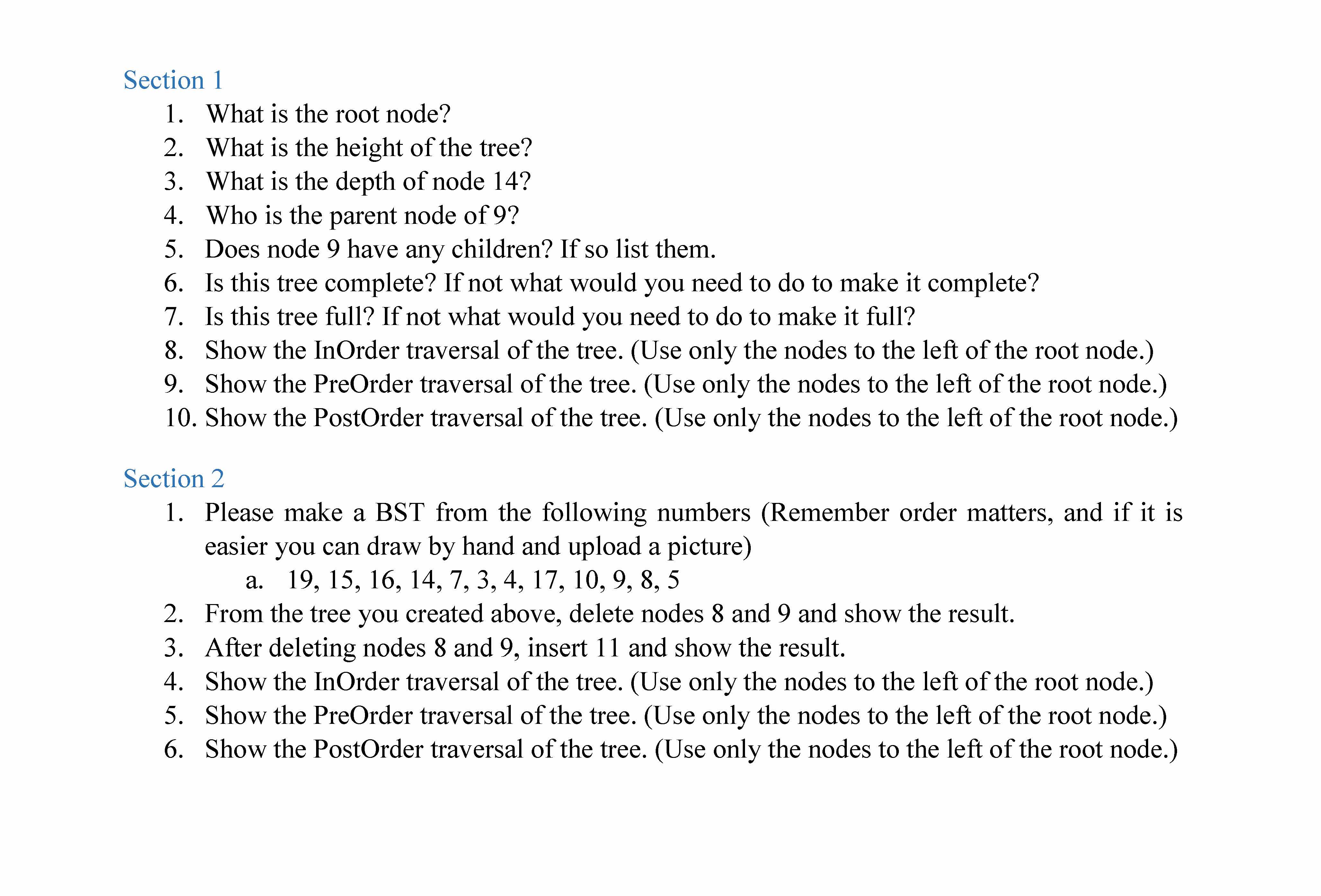 For section 1 please refer to the tree below (For each problem plea...