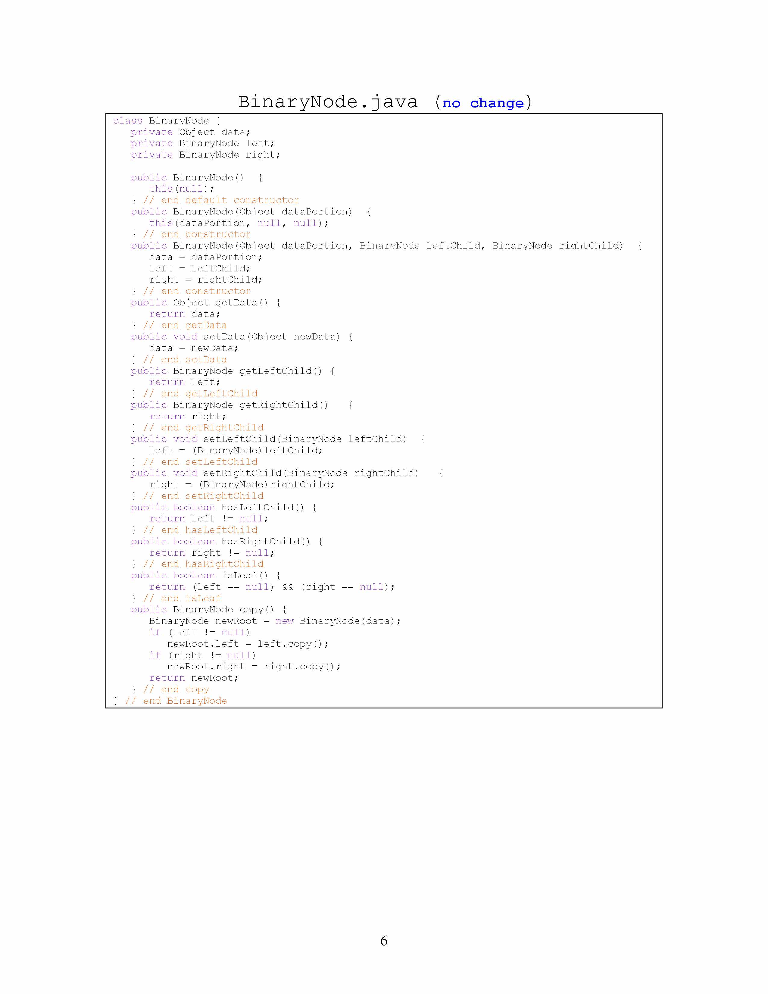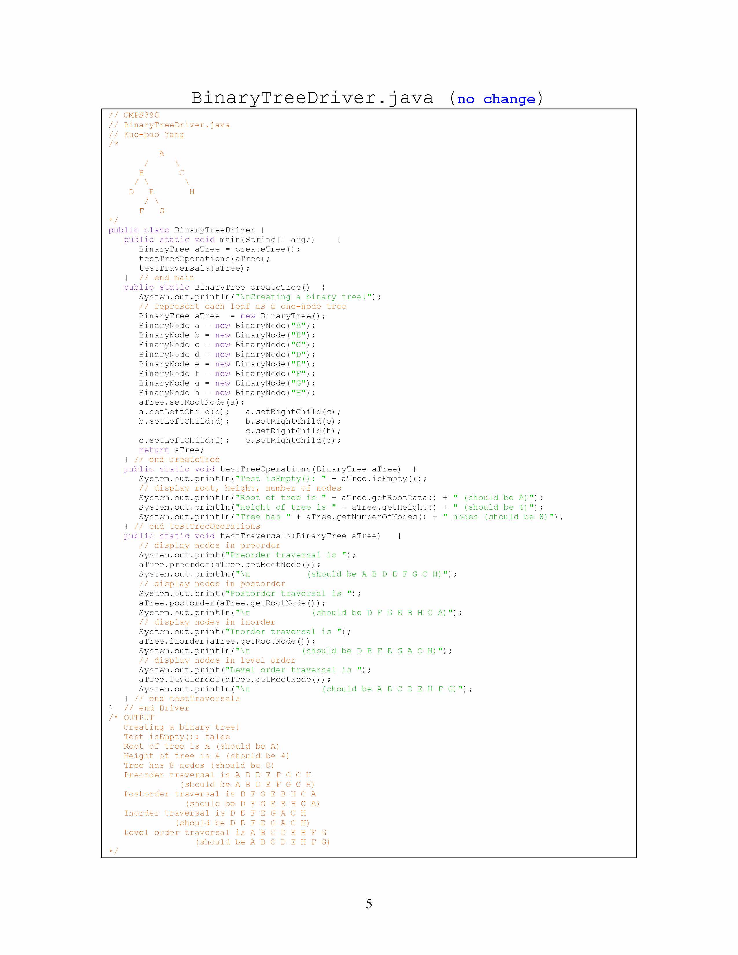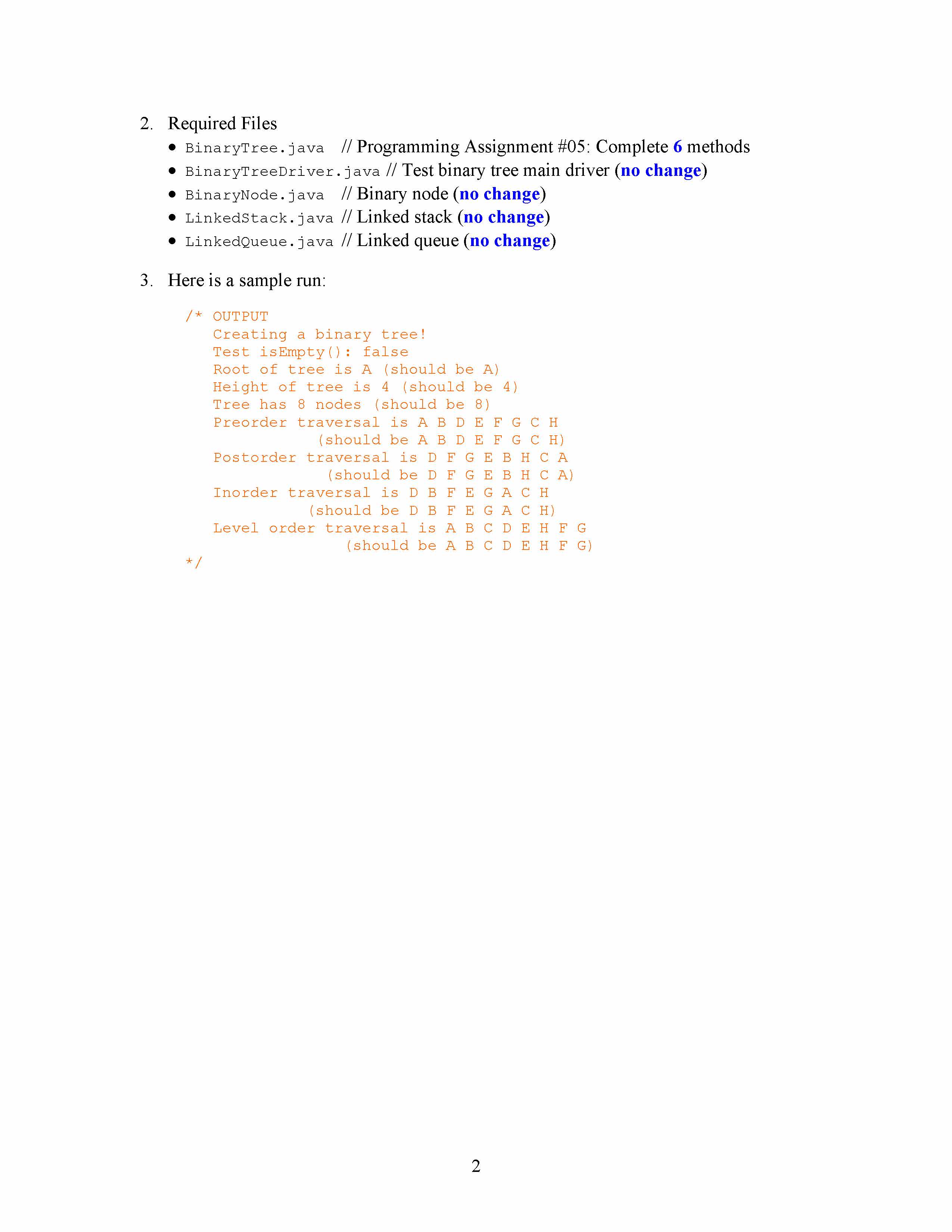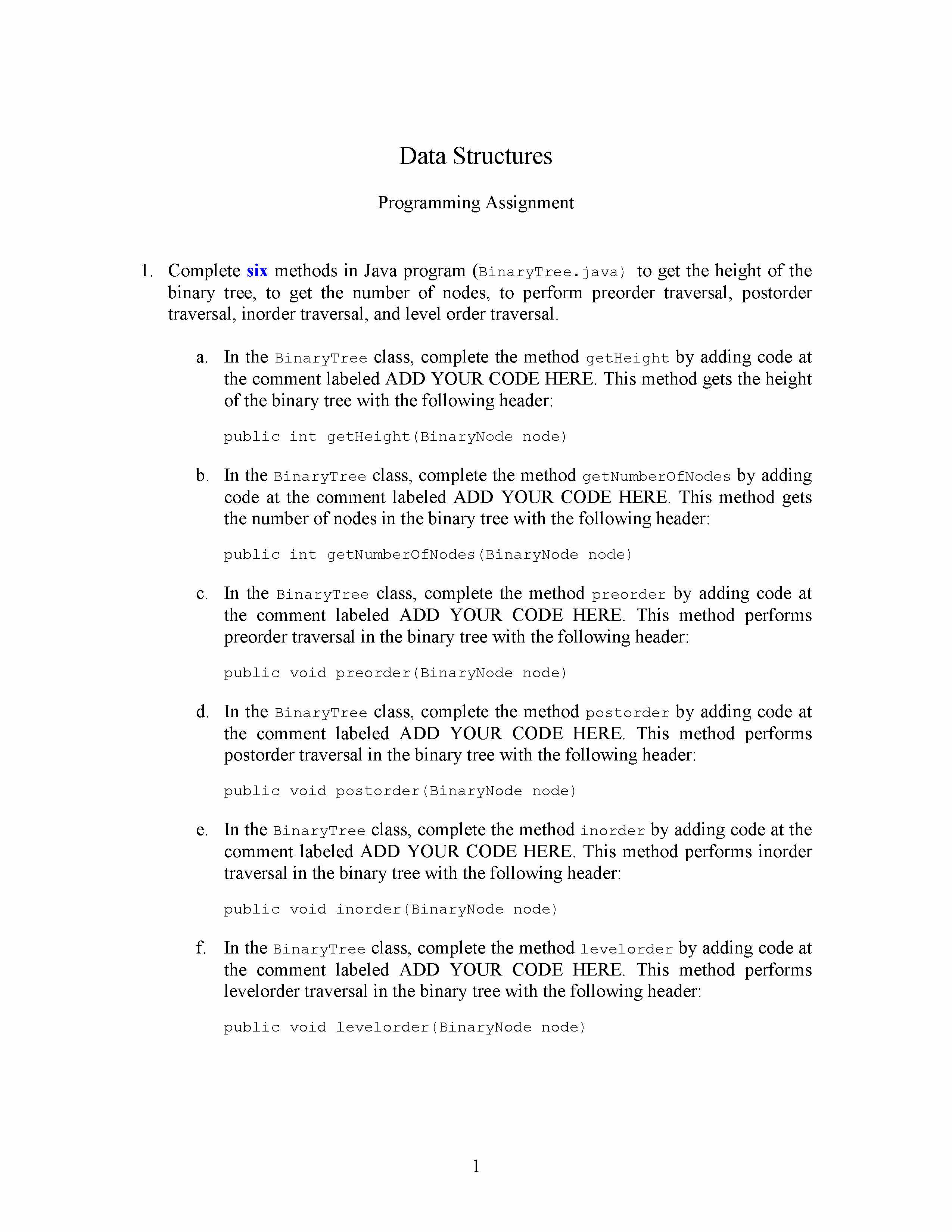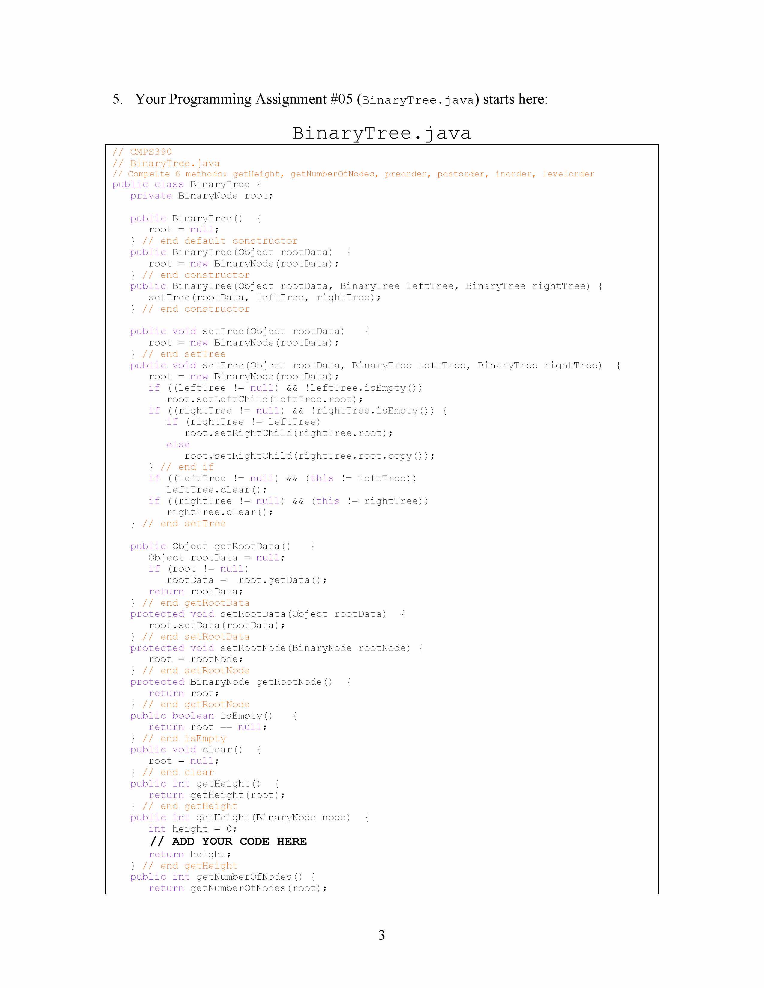 Programming Assignment #05 Binary Tree 1. Complete six methods in...