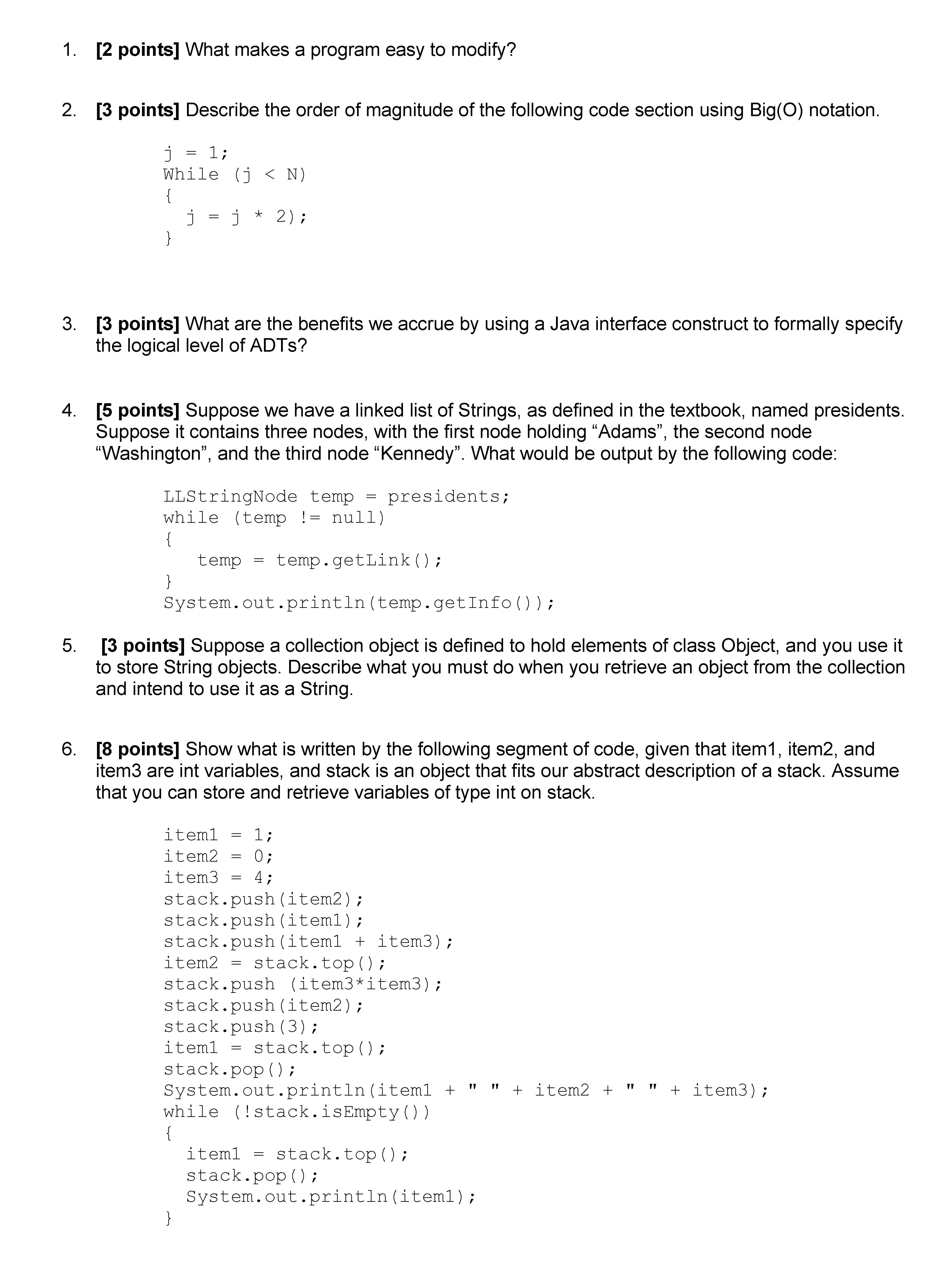 1. [2 points] What makes a program easy to modify? 2. [3 points] D...