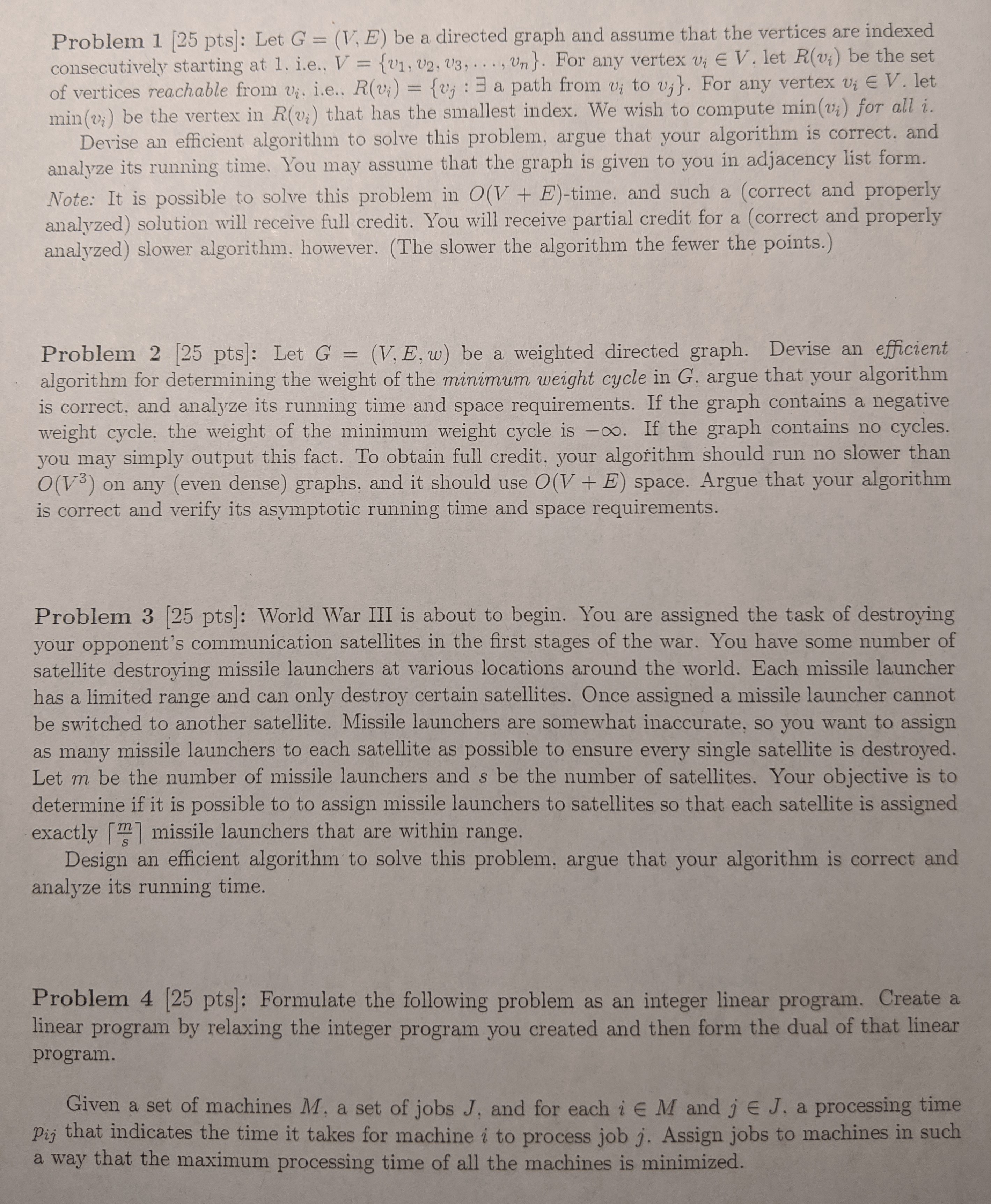 Problem 1 25 pts]: Let G = (V,E) be a directed graph and assume tha...
