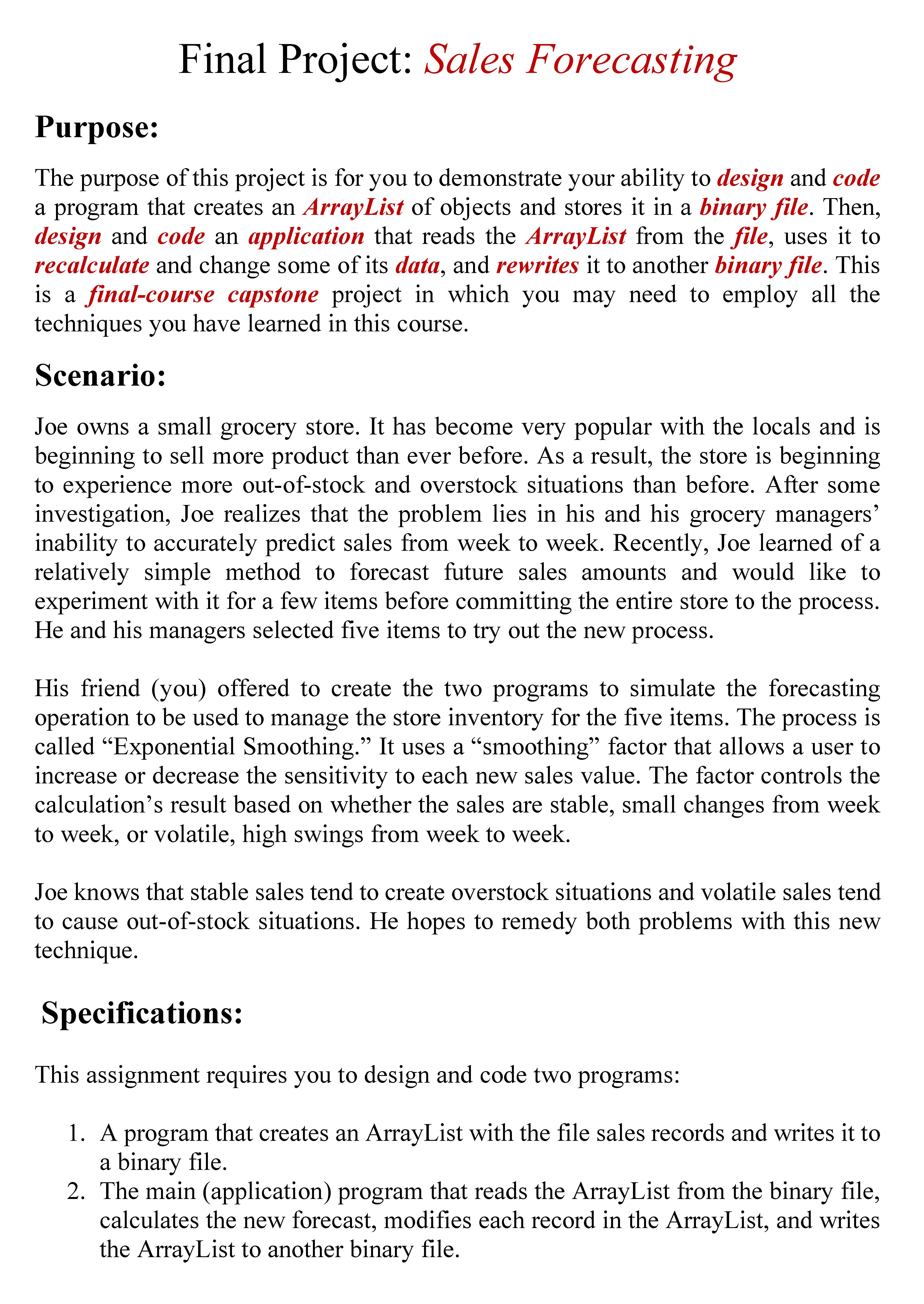 Final Project: Sales Forecasting Purpose: The purpose of this pro...