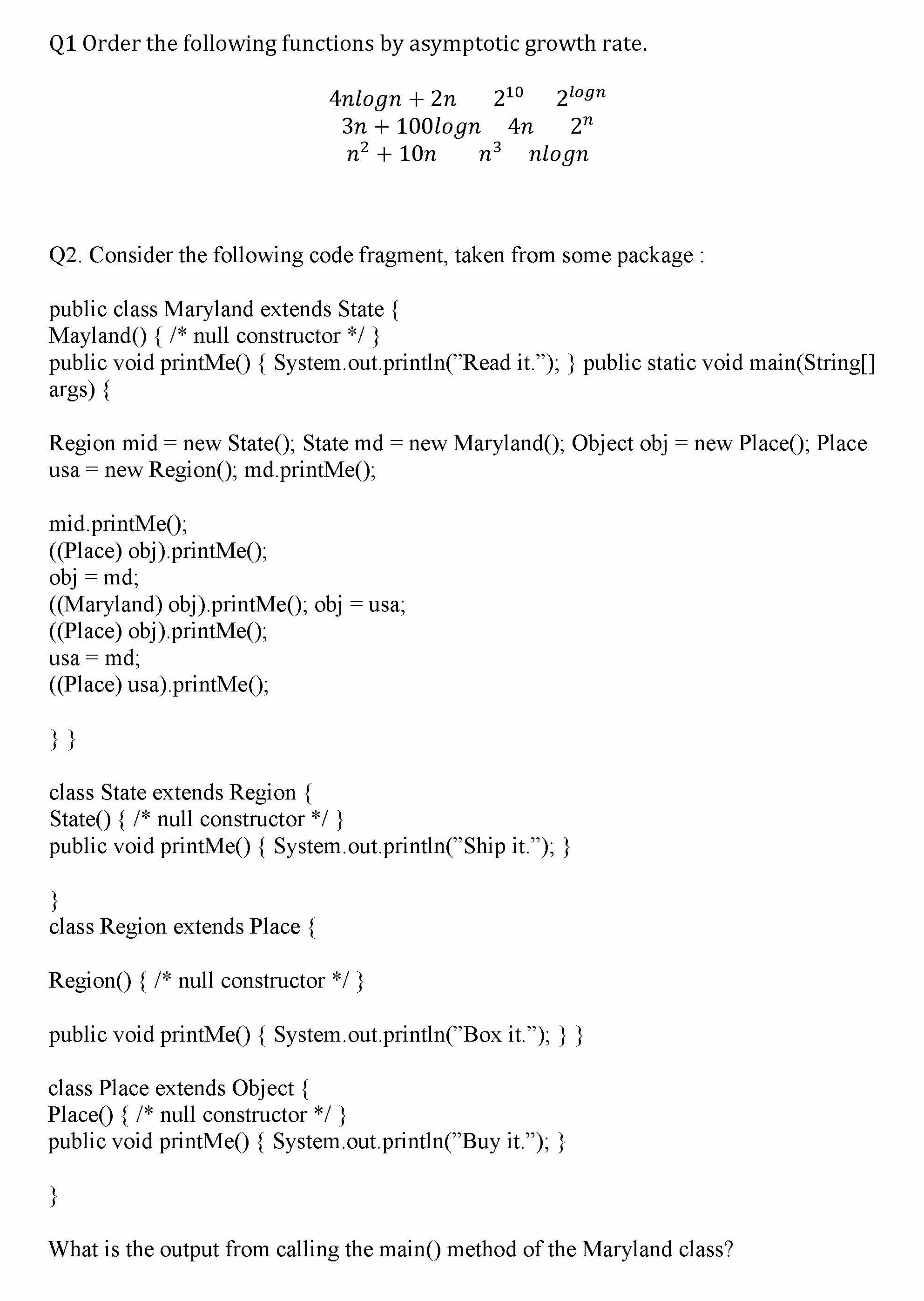 Q1 Order the following functions by asymptotic growth rate. Anlogn...