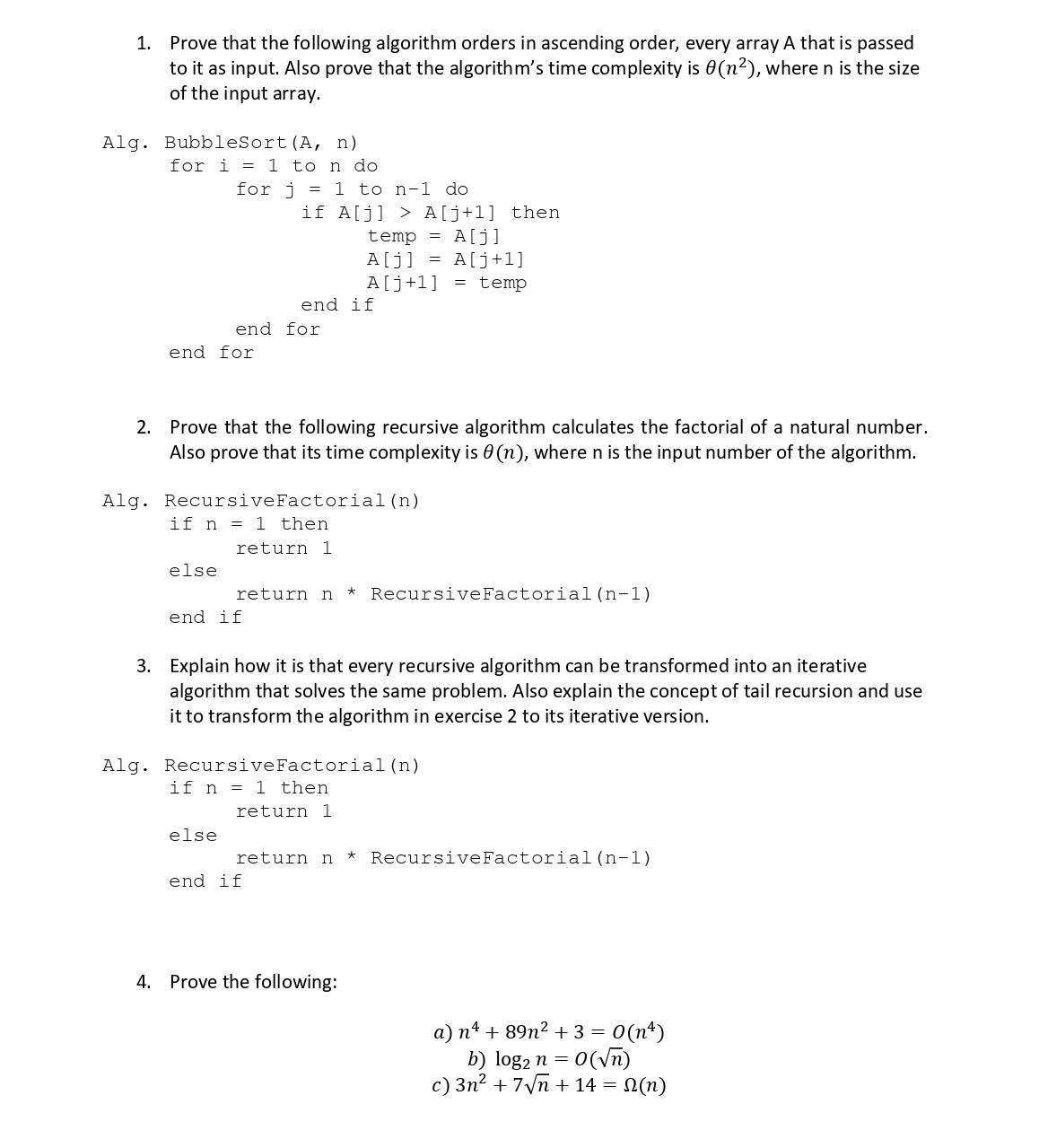 1. Prove that the following algorithm orders in ascending order, ev...