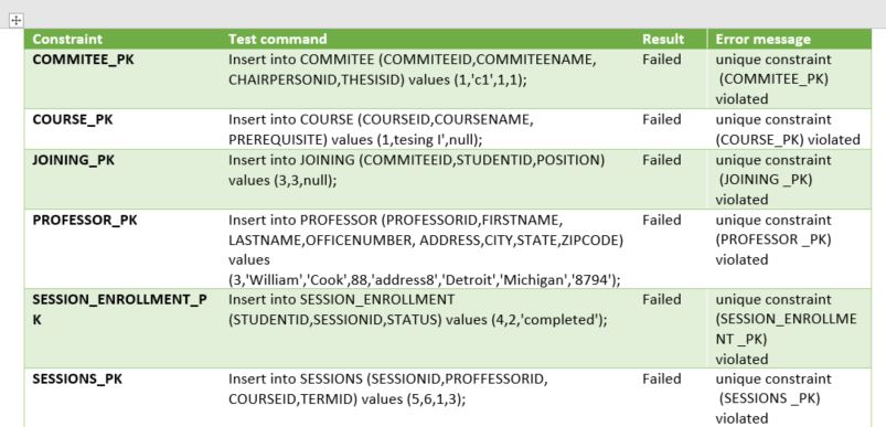 Submit the table creation statements (including constraints) for th...