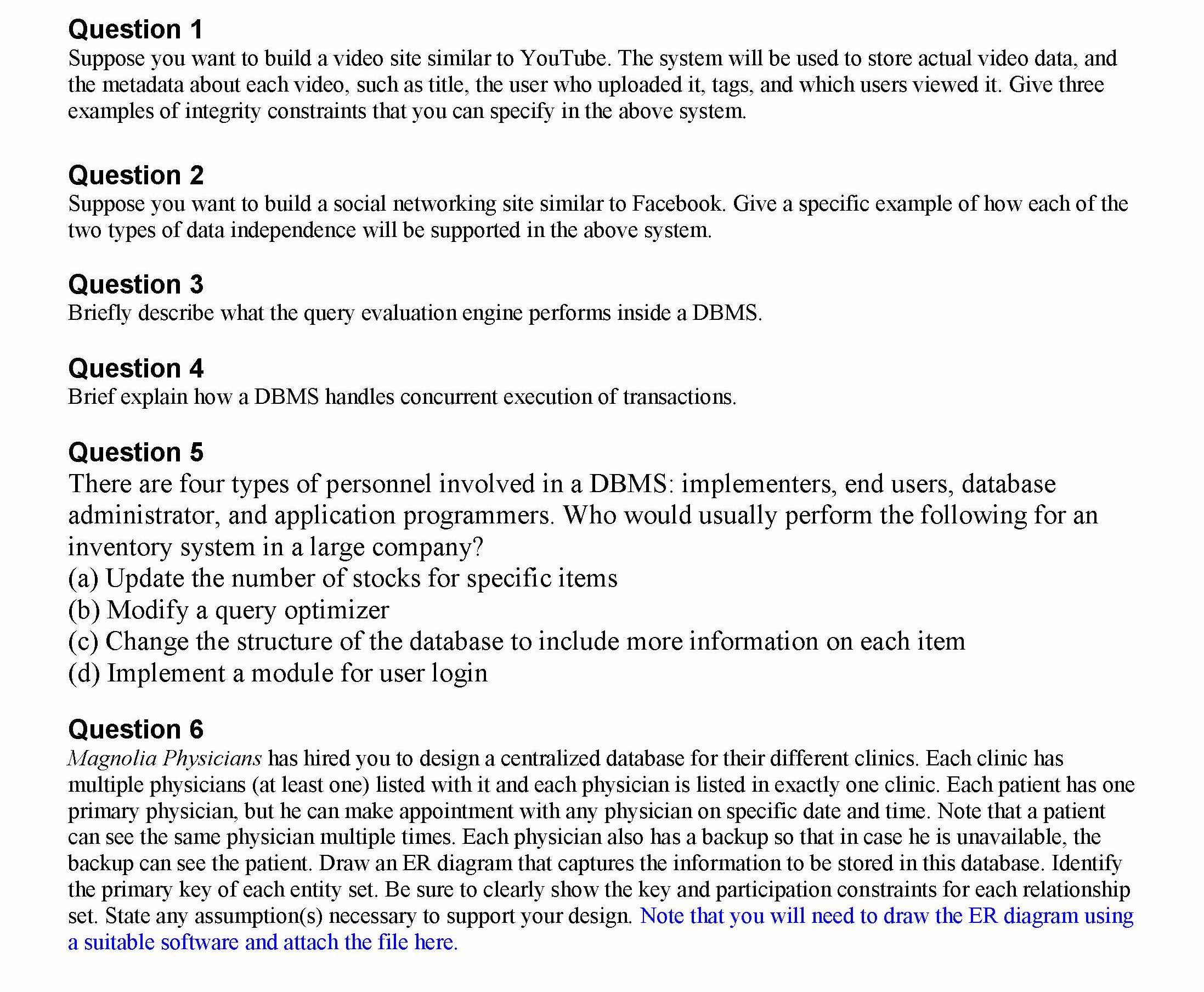 Question 1 Suppose you want to build a video site similar to YouTu...