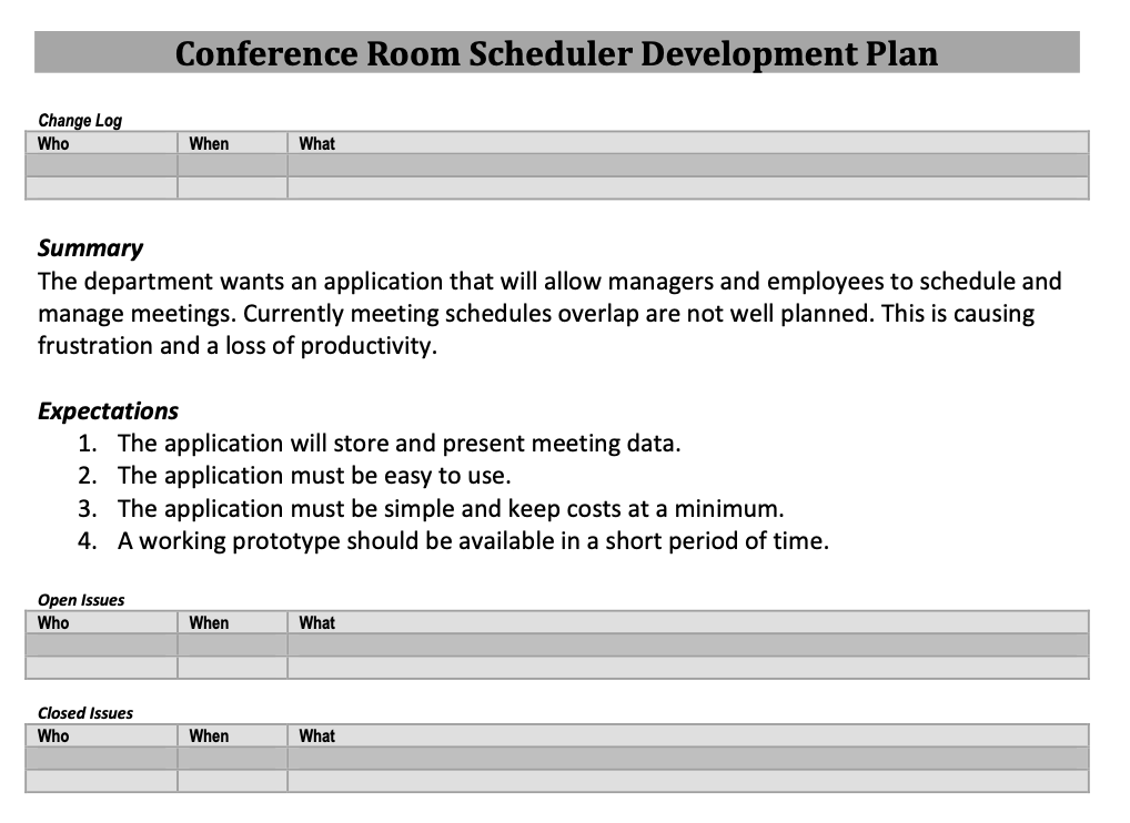 Conference Room Scheduler Development Plan Change Log Who When ...