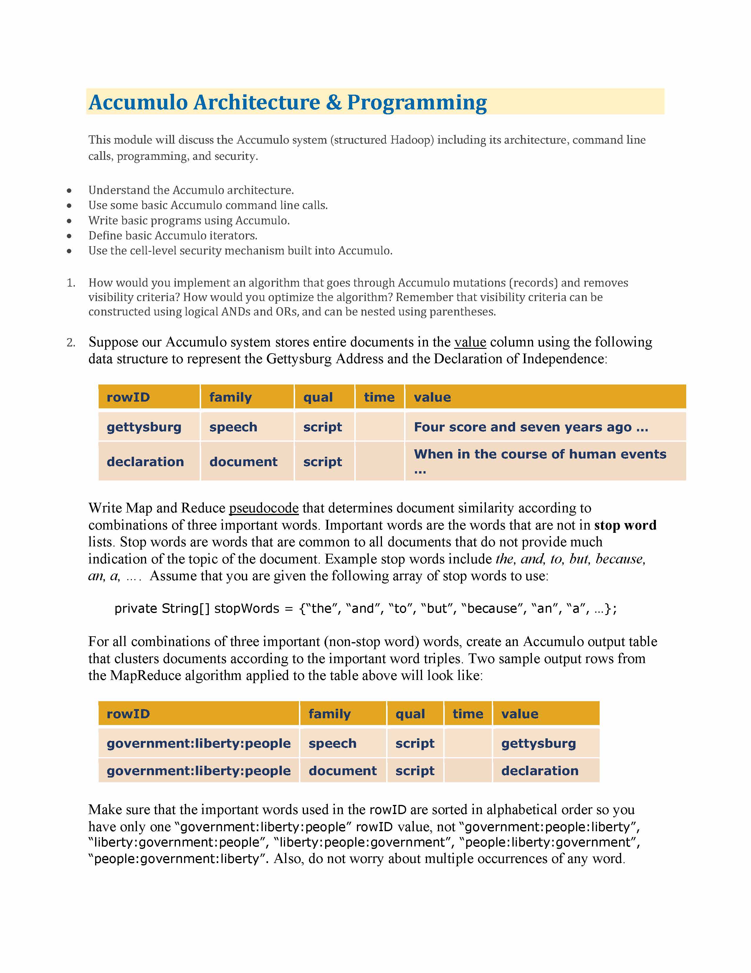 Accumulo Architecture & Programming This module will discuss t...