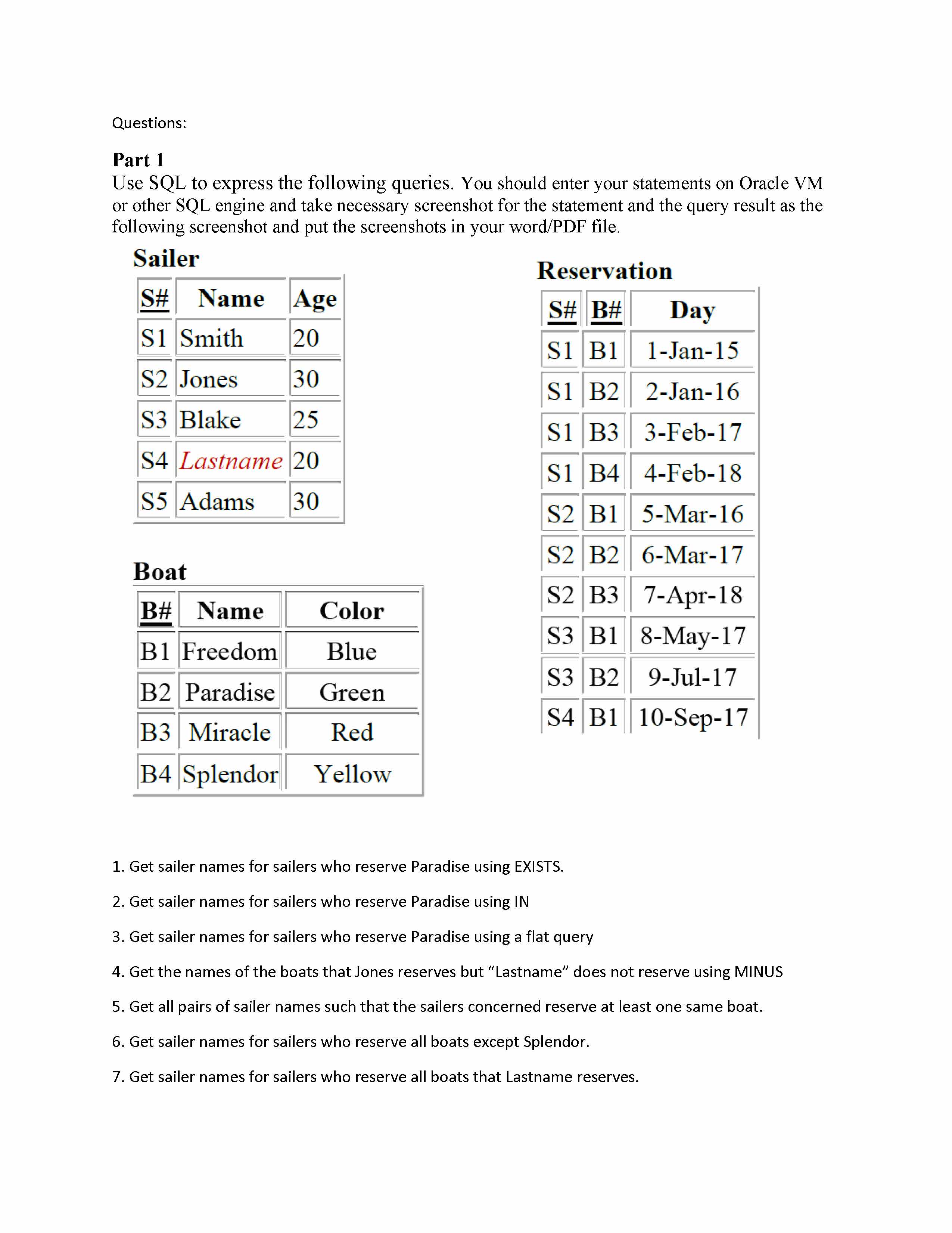 Questions: Part 1 Use SQL to express the following queries. You s...