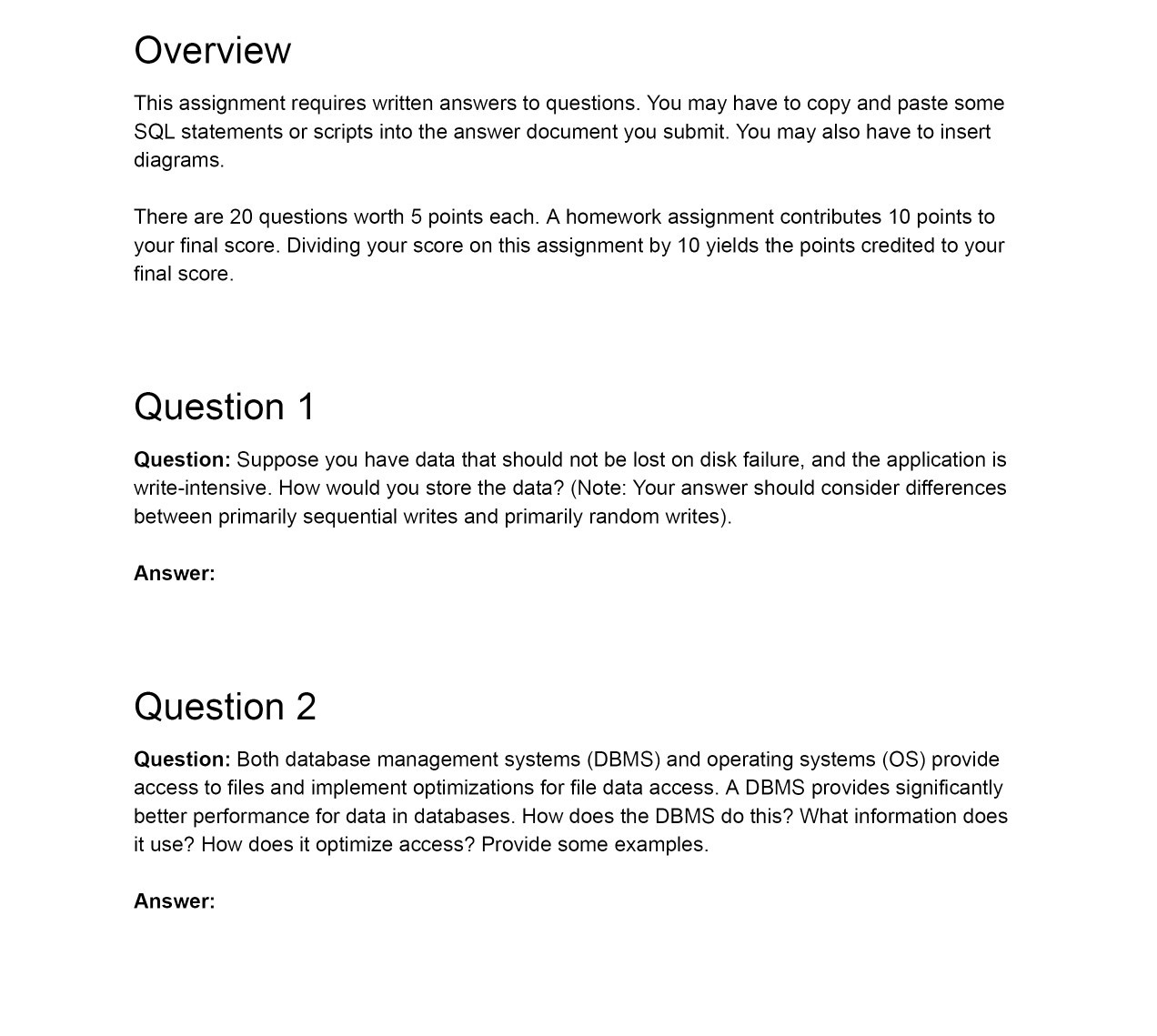 Overview This assignment requires written answers to questions. Yo...