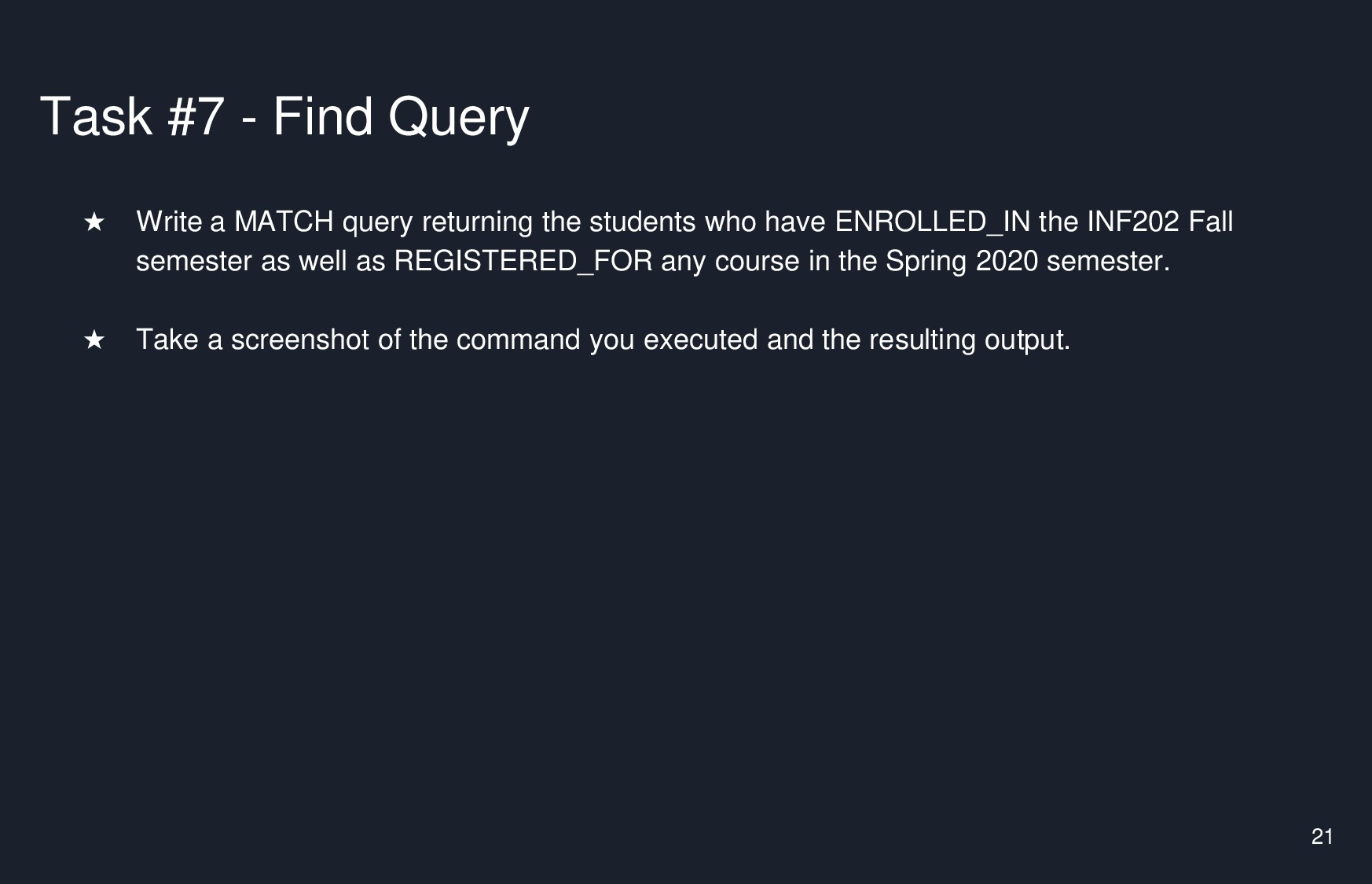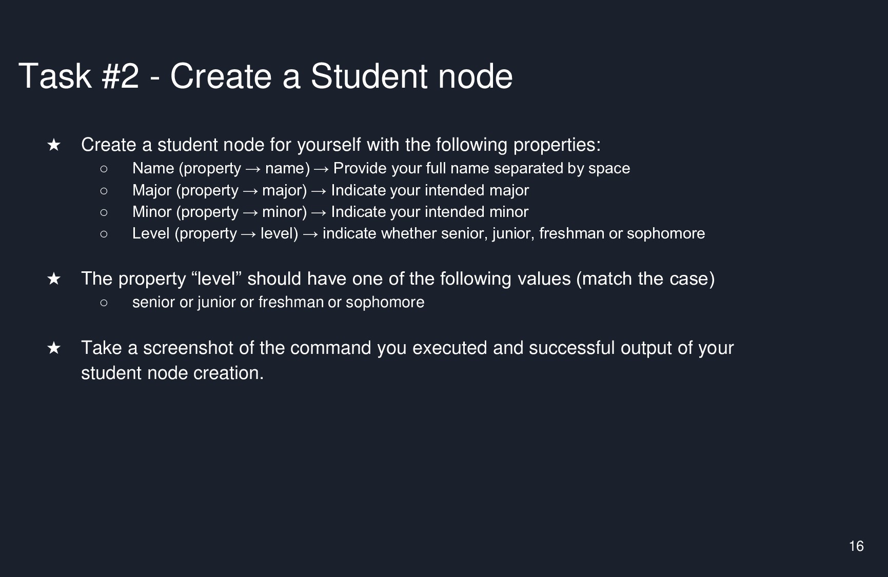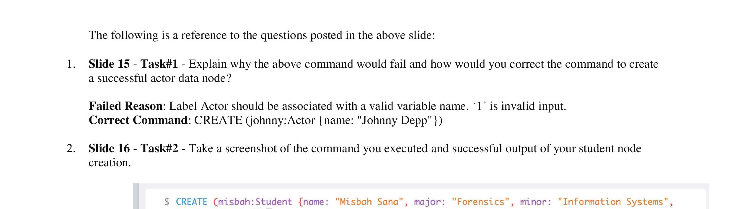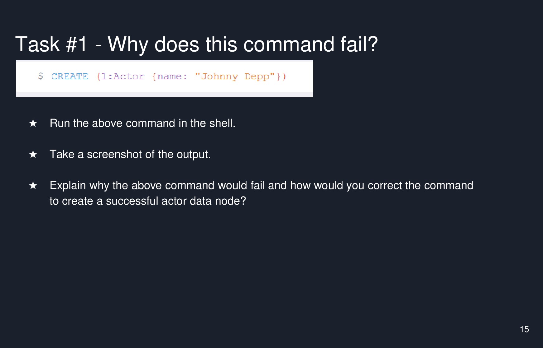 Task #1 - Why does this command fail? S CREATE (1 : Actor {name : ...