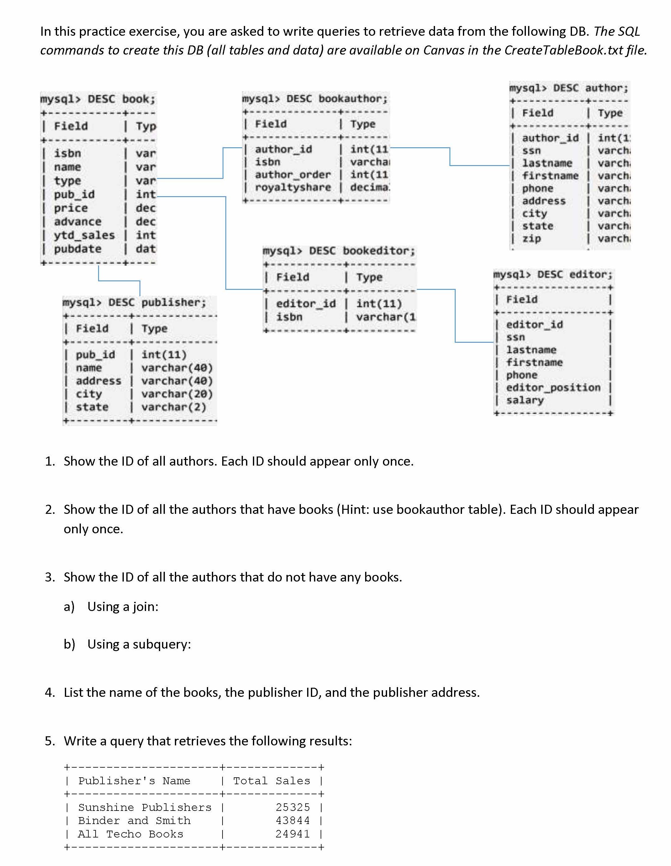 In this practice exercise, you are asked to write queries to retrie...