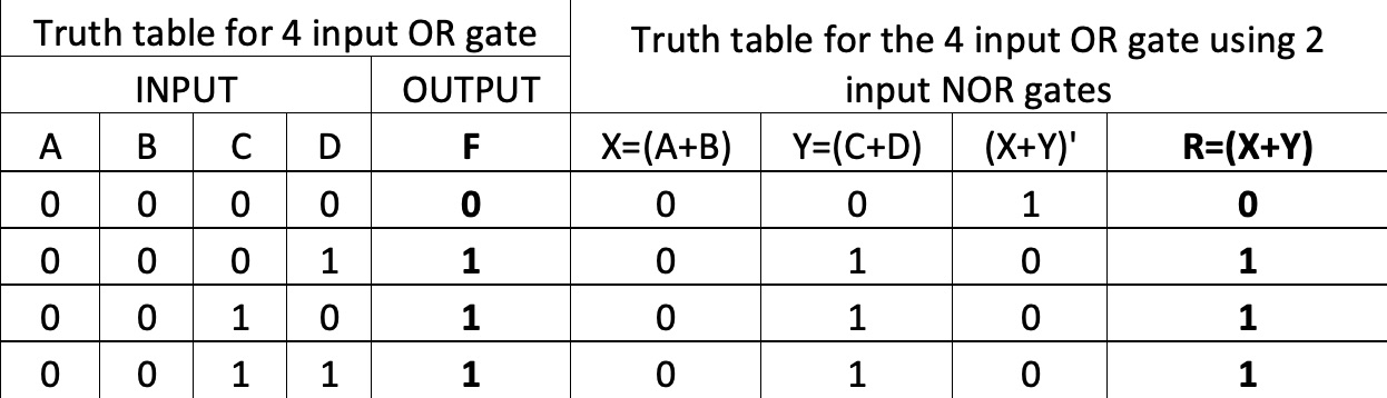 Build a 4 input OR gate using ONLY (multiple) 2 input NOR gates. (P...