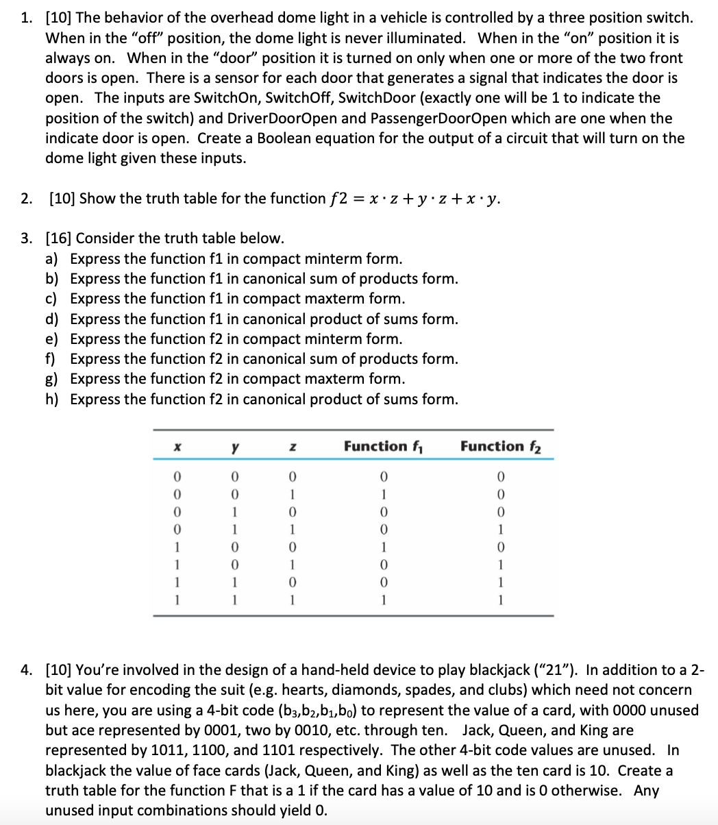 1. [10] The behavior of the overhead dome light in a vehicle is con...