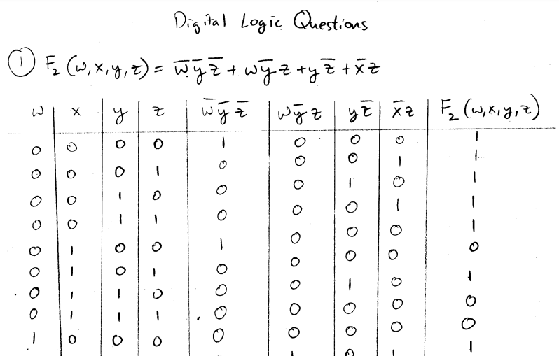 1) Consider the following Boolean Function F2(W,X,y,Z) = w'y'z' + ...