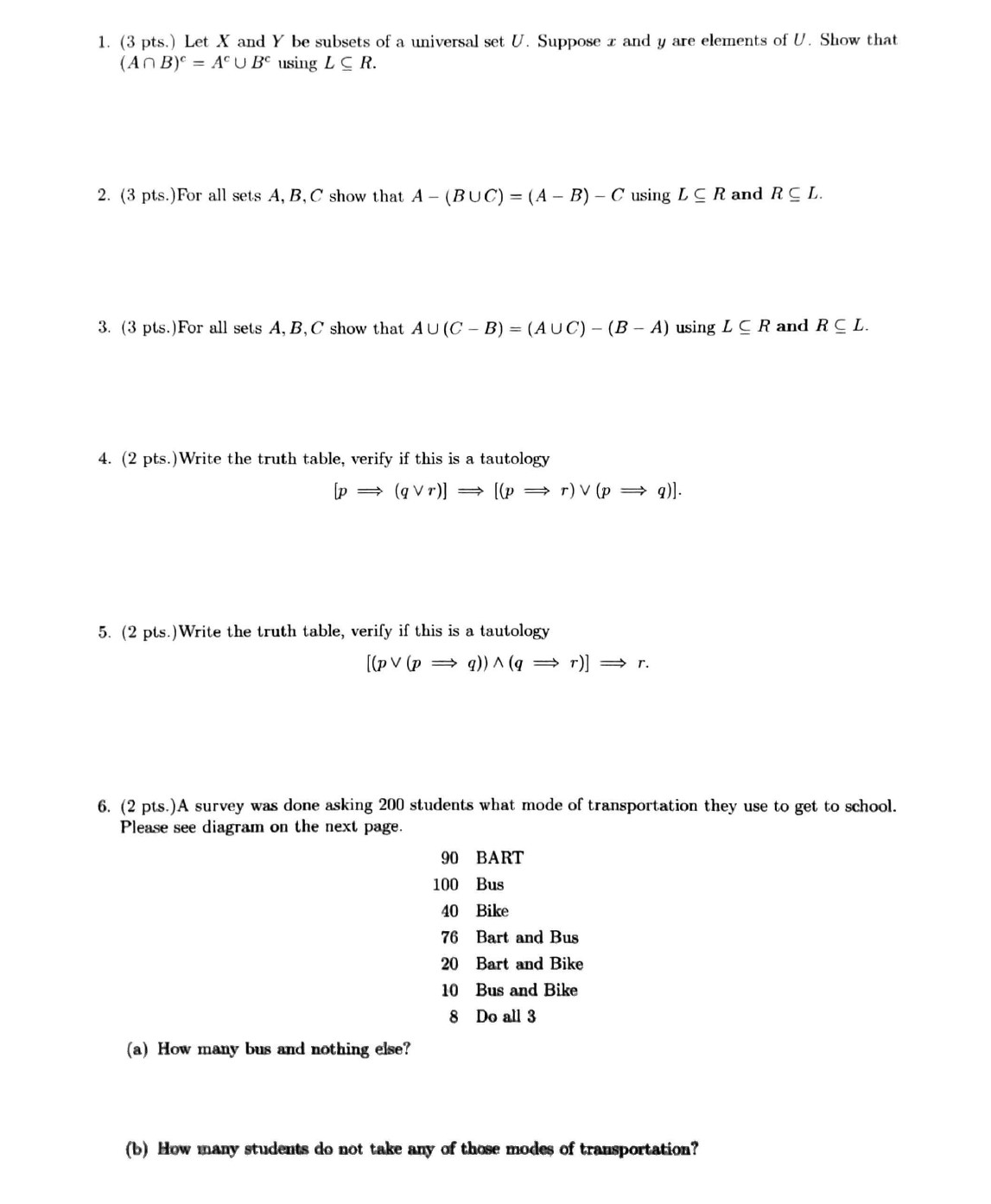1. (3 pts.) Let X and Y be subsets of a universal set U. Suppose I...