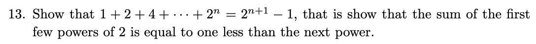 13. Show that 1+2+4+ +2n = 2n+1 - 1, that is show that the sum of ...
