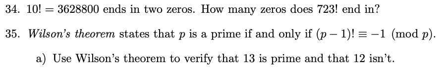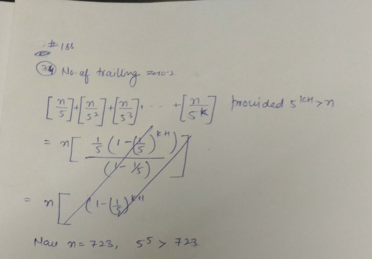 34. 10! = 3628800 ends in two zeros. How many zeros does 723! end i...