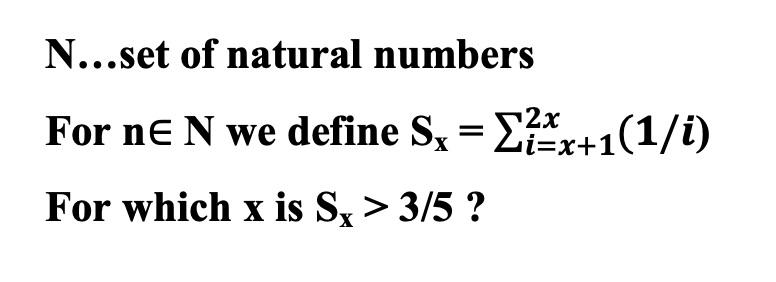 N...set of natural numbers For ne N we define Sx = Ei=x+1(1/i) 2x...