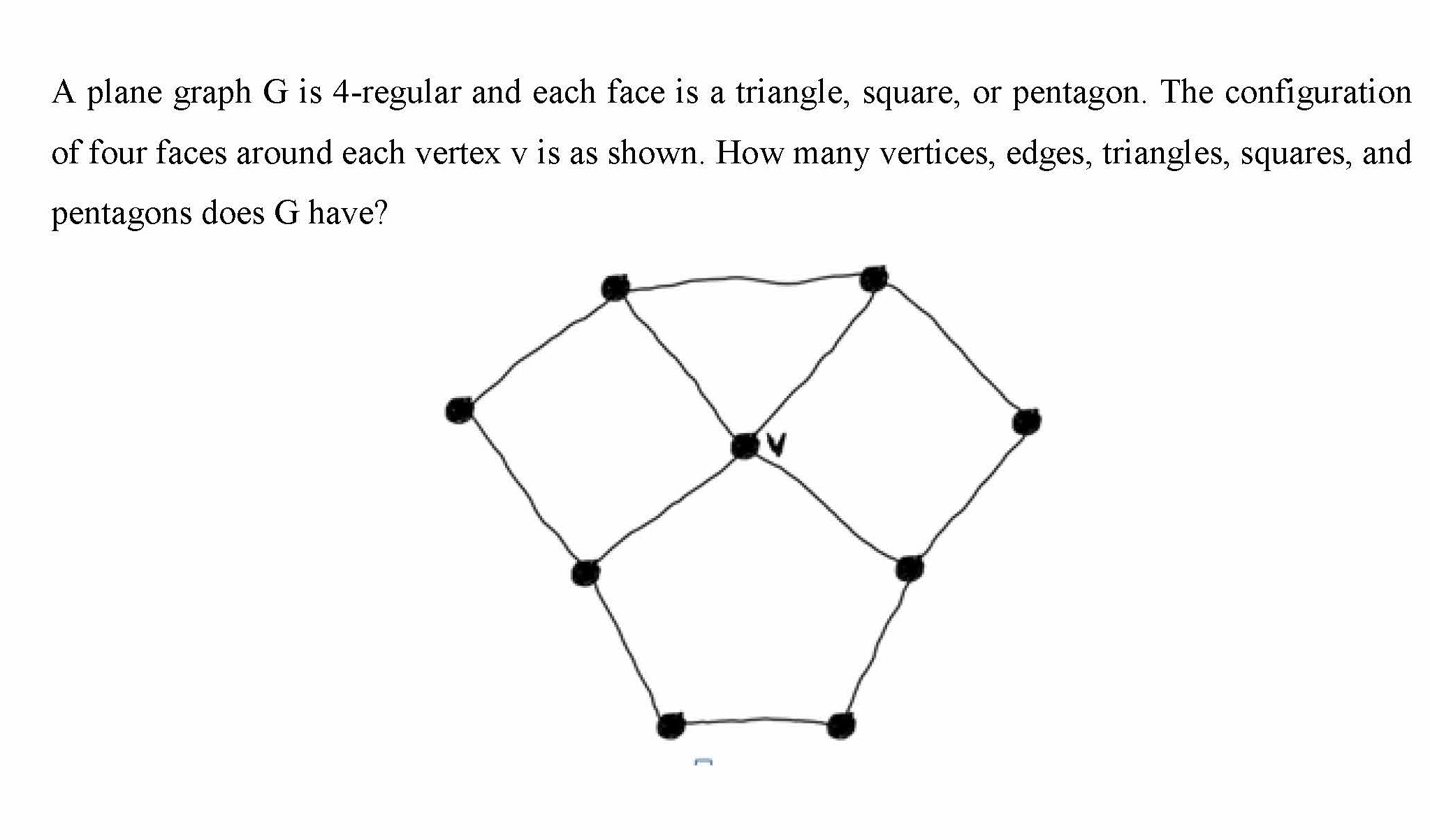 A plane graph G is 4-regular and each face is a triangle, square, o...