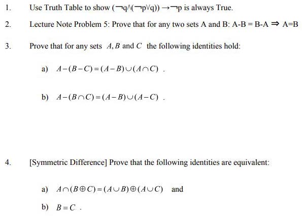 1. Use Truth Table to show (-9^(->VVq)) p is always True. ...