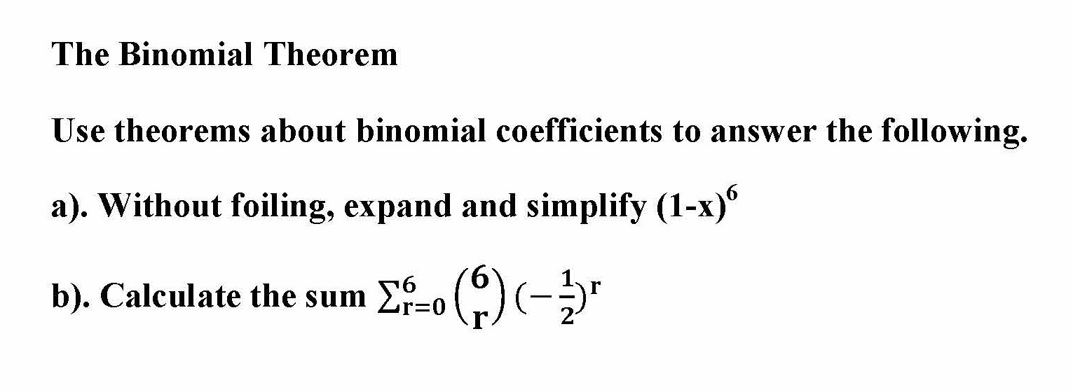 The Binomial Theorem Use theorems about binomial coefficients to a...