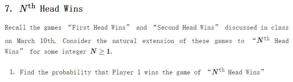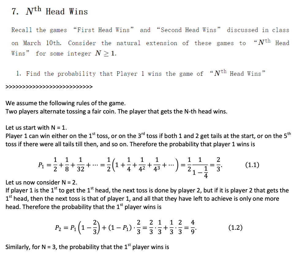 7. Nth Head Wins Recall the games "First Head Wins" and ...