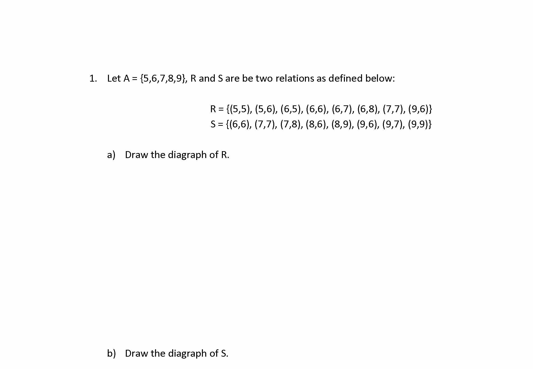 1. Let A = {5,6,7,8,9}, R and S are be two relations as defined bel...