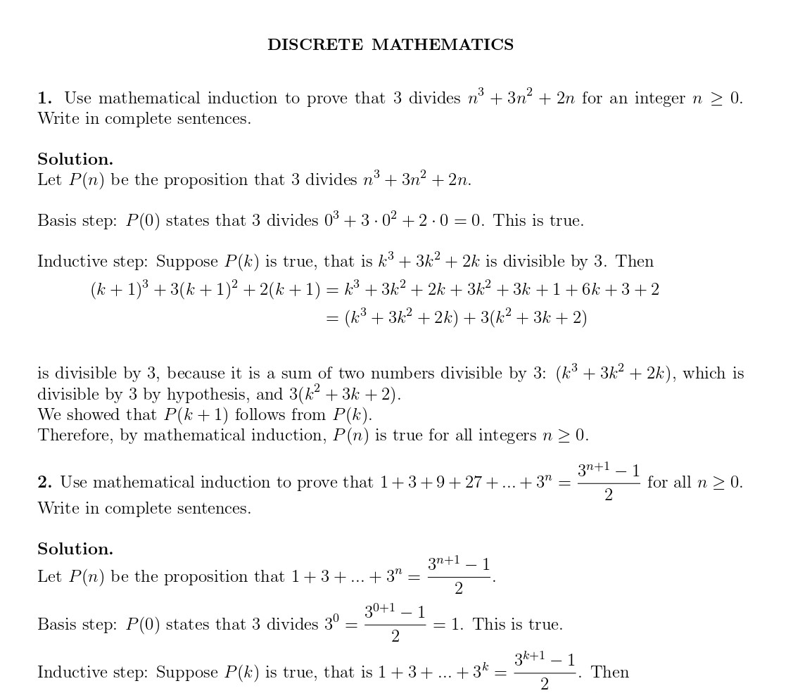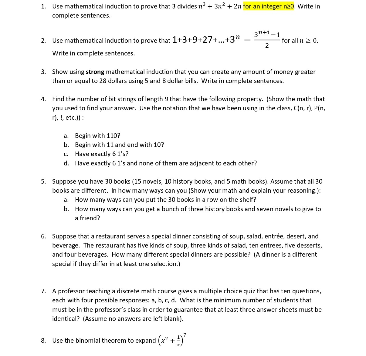 1. Use mathematical induction to prove that 3 divides n3 + 3n 2 + 2...