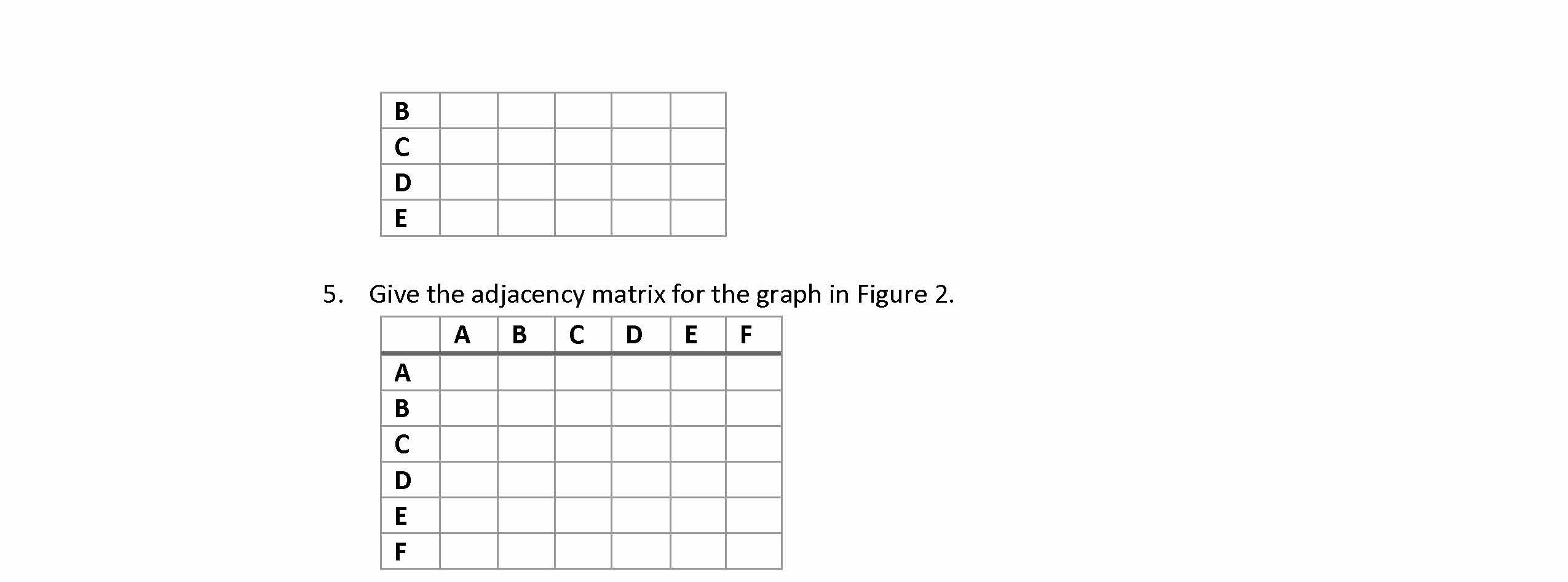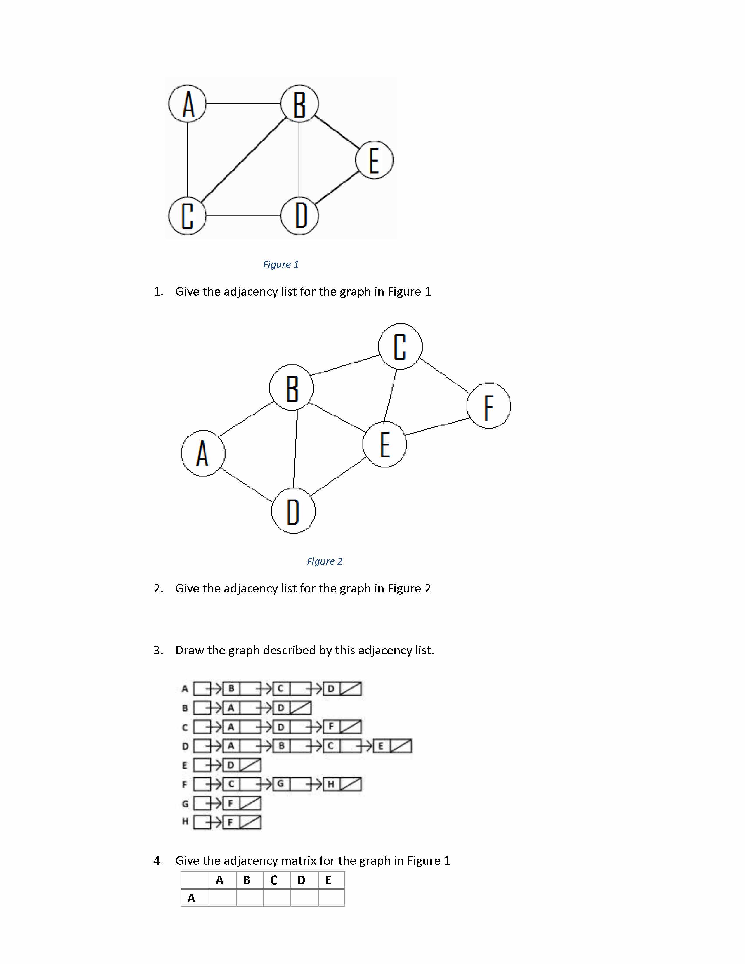 A B E Figure 1 1. Give the adjacency list for the graph in Figu...