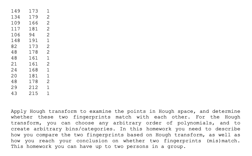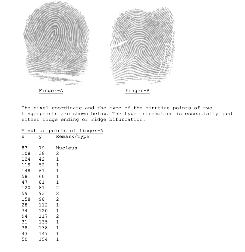 Finger-A Finger-B The pixel coordinate and the type of the minuti...