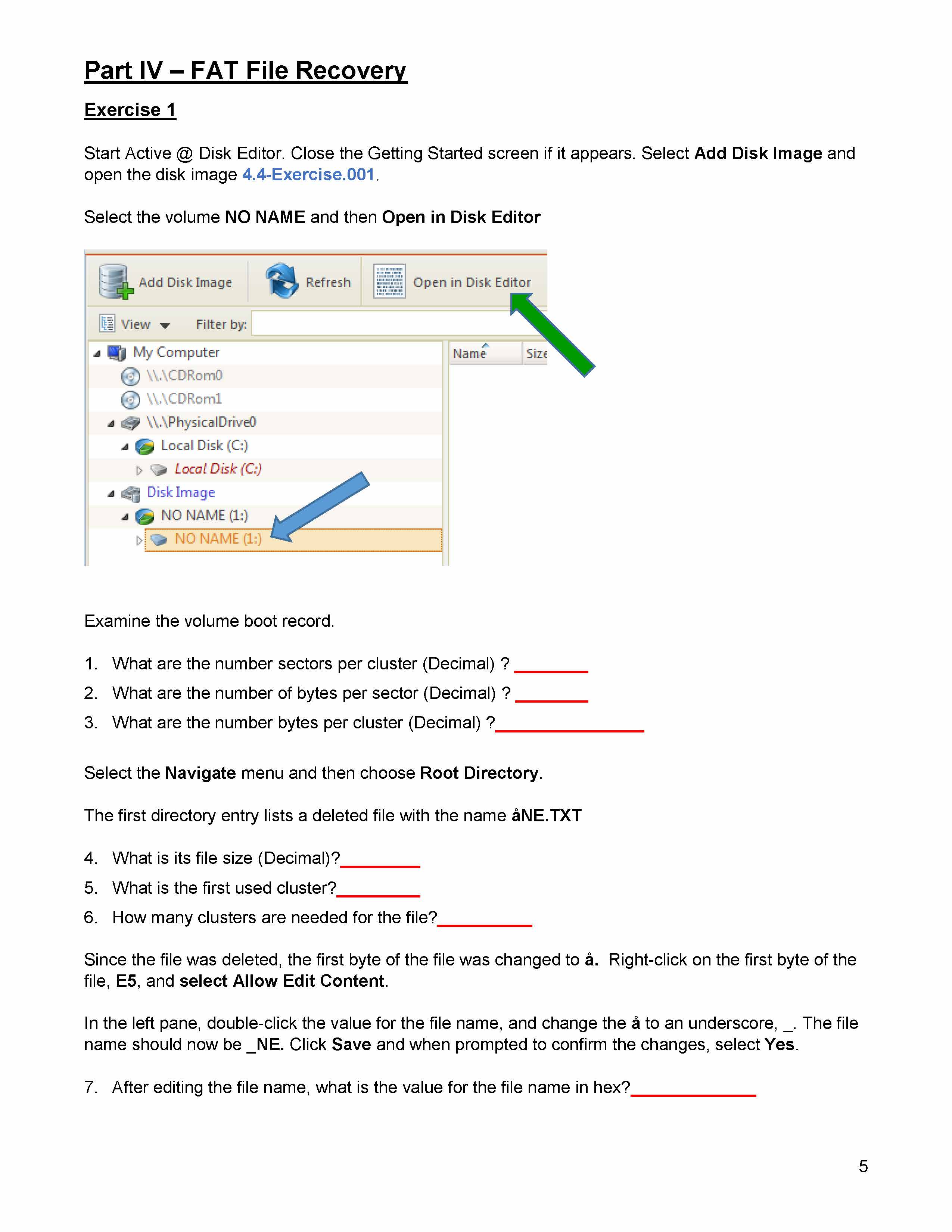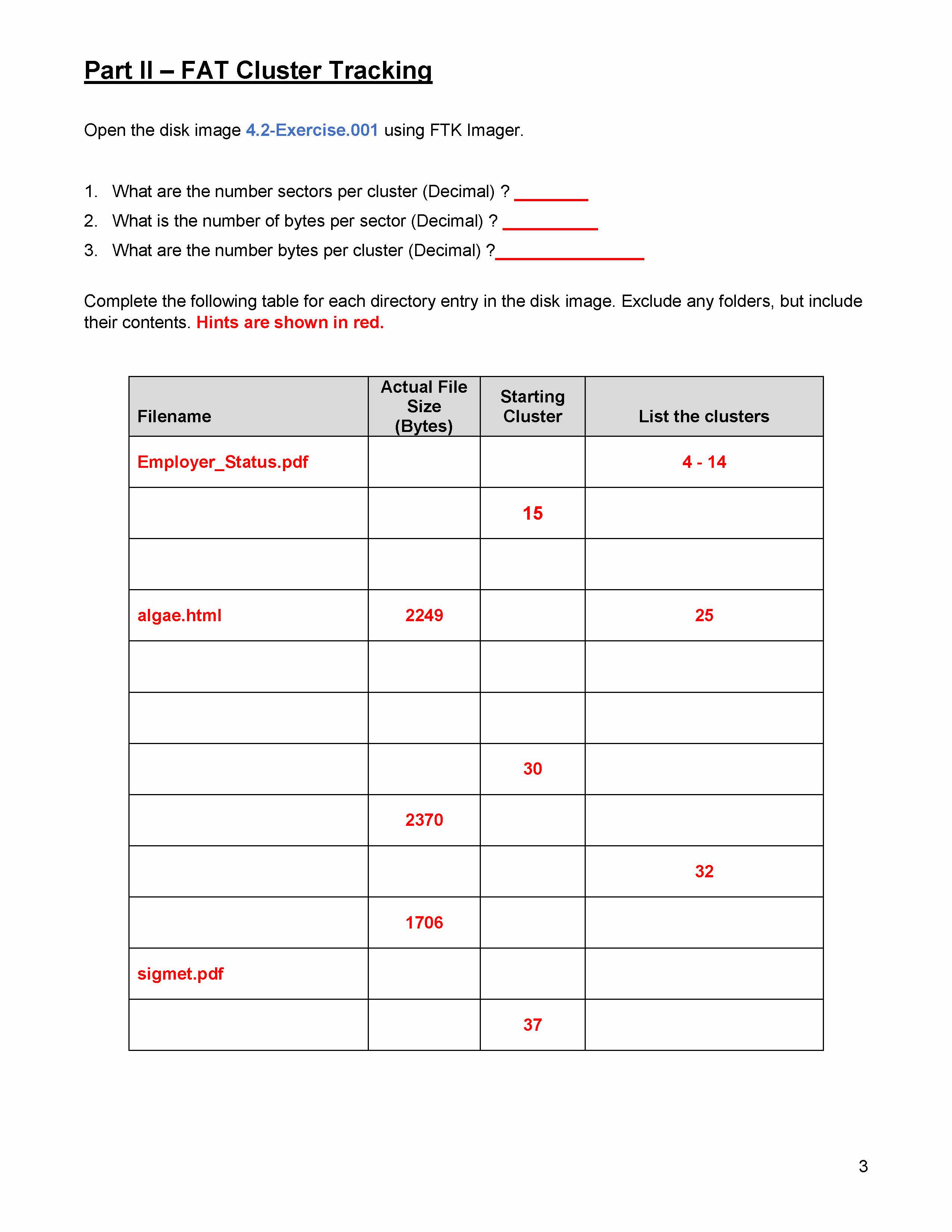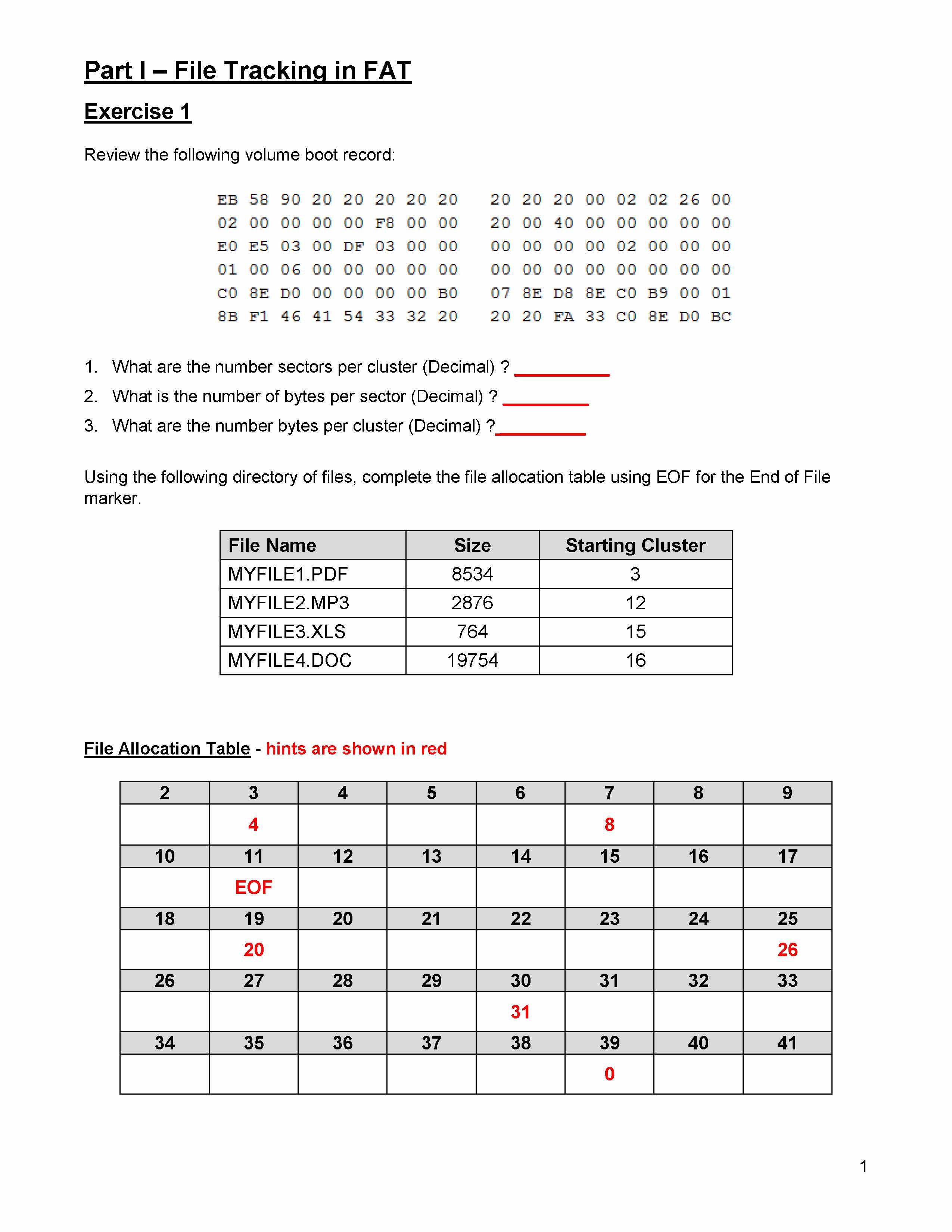 Part I – File Tracking in FAT Exercise 1 Review the follow...