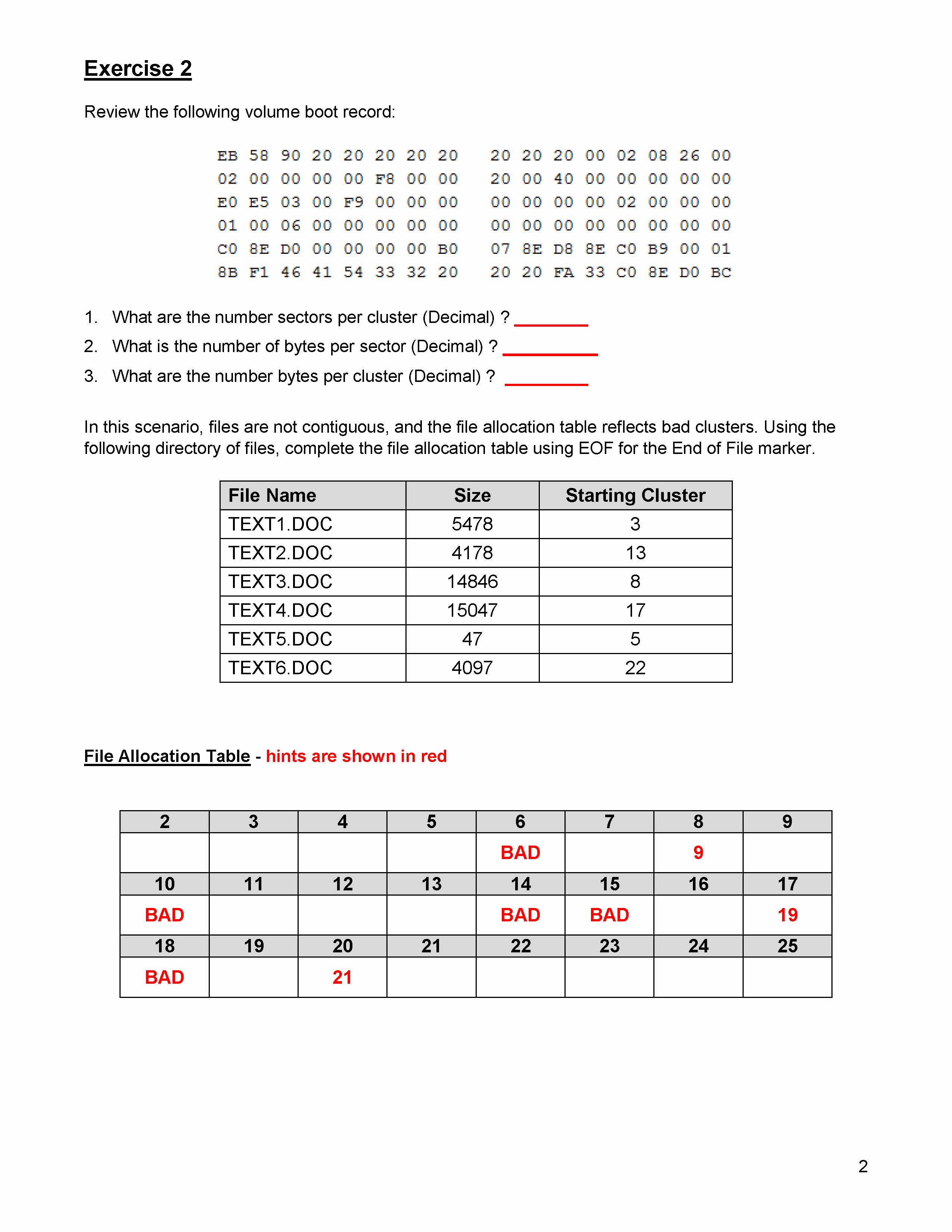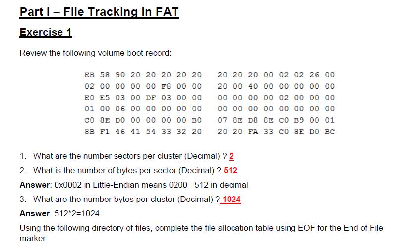 Part I – File Tracking in FAT Exercise 1 Review the following v...